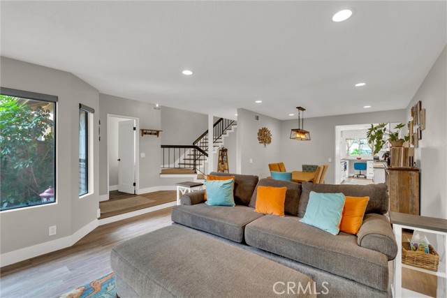 Welcome home to this spacious 3-bedroom, 3-bath split-level condo. A rare find that combines functionality, great flow and modern comfort in a prime location. Step inside to discover an open concept living space filled with natural light and high ceilings. Entertain effortlessly with both a living room and a family room, plus a large dining area perfect for gatherings. The newly remodeled modern kitchen is a chef’s dream, featuring an 8-burner stove, double oven, large center island with seating for four, and ample storage throughout. The home also includes indoor laundry, a lower-level powder room, two-car attached garage, and an updated HVAC system (2022) for year-round comfort. The sizeable primary suite offers a peaceful retreat with an en suite bath and a walk-in closet. The two additional bedrooms upstairs have ample closet space and a newly renovated full bathroom which makes this home ideal for a growing family, a home office and guests. Just off the kitchen enjoy outdoor living and entertaining on the spacious, fenced-in patio, or take advantage of the community pool and jacuzzi along with nearby walking trails situated next to the highly regarded Serrano Park. The home’s prime location places you just minutes from award-winning schools, Irvine Spectrum’s top-tier shopping, dining, and entertainment, with cozy local cafes and everyday essentials just a short walk away. Move-in ready and waiting for you to call it home! Buyer to confirm all details.