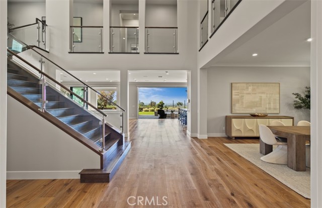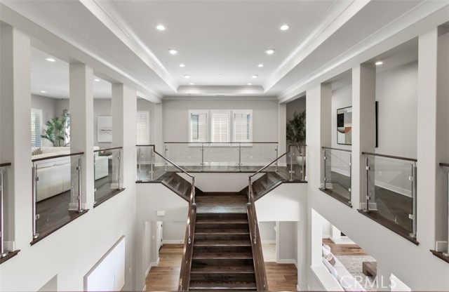 On one of the most sought-after streets in Orchard Hills’ Bella Vista enclave, 224 Clear Falls rises with distinction, offering a vantage few homes in the community can claim, rare views of the ocean, Catalina, and surrounding hills. Framed by the guard-gated serenity of Orchard Hills Estates and surrounded by lush avocado groves, this residence is a masterful balance of elegance, comfort, and enduring quality. Inside, a soaring two-story foyer and sweeping staircase create an unforgettable first impression, leading to a great room designed for both grand entertaining and everyday living. Glass doors open to an expansive covered outdoor lounge, where the extraordinary views become a natural extension of the home. The gourmet kitchen dazzles with its center island and wrap-around breakfast bar, bright dining nook, walk-in pantry, and the coveted secondary kitchen that makes hosting effortless. The primary suite is a sanctuary of its own, boasting a private view deck, dual walk-in closets, and a spa-inspired bath with Roman tub and luxe shower. Complementing the primary suite are four secondary bedrooms, each with ensuite baths, including one conveniently located on the main level for guests or multi-generational living. A spacious bonus room connects to a covered deck, while a refined home office and welcoming drop zone add versatility to the thoughtful floor plan. Meticulously maintained and enhanced with a rare four-car garage, this home is a jewel within one of Irvine’s most prestigious guard-gated communities. Just minutes from Irvine Spectrum, Tustin Marketplace, and major freeways, 224 Clear Falls embodies a lifestyle defined by prestige, serenity, and views unlike any other in Orchard Hills.