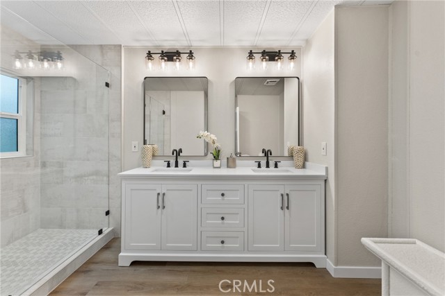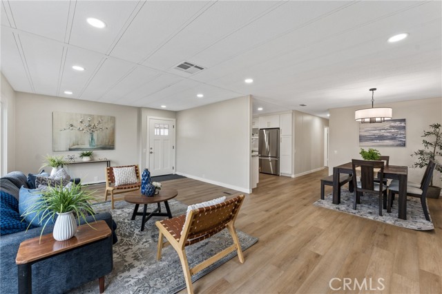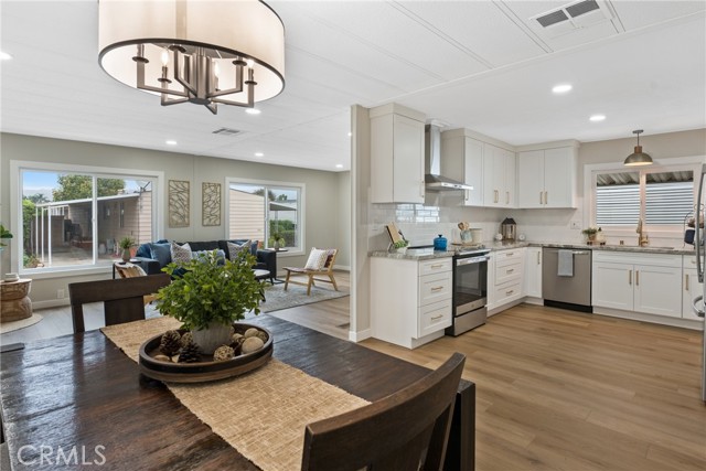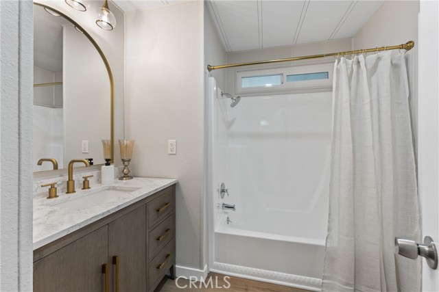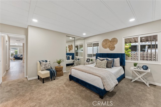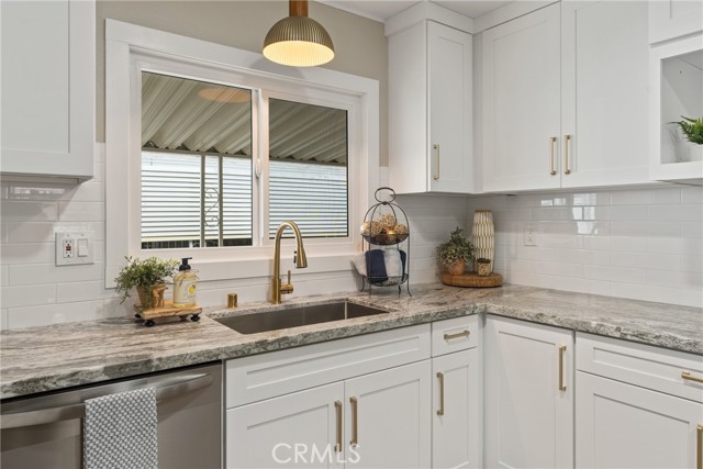 Welcome To Lake Park La Habra!! A Premier 55+ Luxury Community. Nestled adjacent to Lake Park Brea. Step into this beautifully renovated, turnkey home offering 1,248 sq. ft. of elegant living space with 2 bedrooms and 2 bathrooms. From the moment you arrive, you’ll be impressed by the stunning curb appeal, featuring fresh exterior paint and low maintenance landscaping that enhances the home’s modern charm. Inside, the open and inviting floor plan showcases quality upgrades throughout including luxury vinyl plank flooring, energy efficient dual pane windows, and designer finishes. The spacious living area flows seamlessly into dining room and a showstopping custom kitchen, complete with white shaker cabinetry, granite countertops, a subway tile backsplash, and upgraded fixtures. Both bedrooms feature new carpet, mirrored wardrobe closet doors for a touch of sophistication, while the bathrooms have been stylishly updated with beautiful vanities, countertops and premium fixtures. The primary suite offers a spa inspired bathroom with a luxurious walk-in shower and brand new double vanity. Your private retreat for relaxation. Additional highlights include a newer roof, new paint inside and out, recessed lighting throughout, indoor laundry, a covered front porch, newly landscaped, an attached carport, and a convenient storage shed. Enjoy serene, resort style living in one of La Habra’s most sought after senior communities. Plenty of community activities and wonderful amenities including clubhouse, library, exercise room, pool and spa. Bedroom 2 has been virtually enhanced with funiture to show possible furniture placement. This is the home you’ve been waiting for with all the bells and whistles!