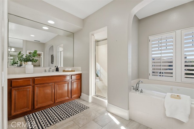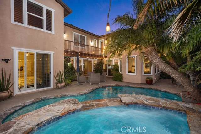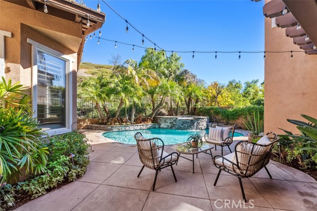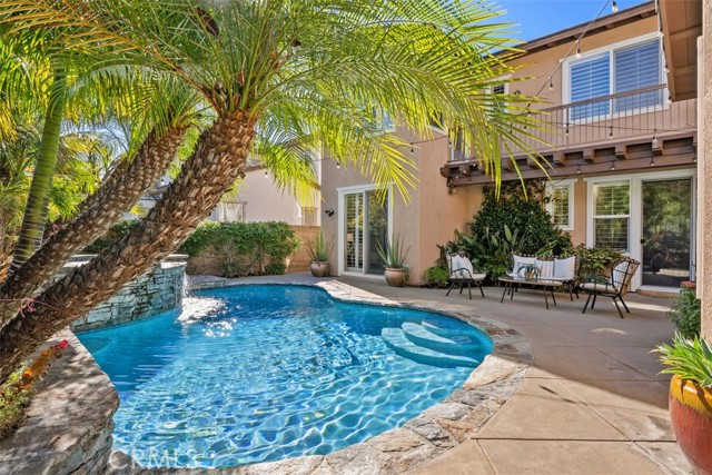 Welcome to 22816 Maiden Lane, nestled within the prestigious guard-gated community of Stoneridge in Mission Viejo. This beautifully upgraded 6-bedroom residence sits on a quiet cul-de-sac street, backing to the tranquil O’Neill Regional Reserve with no neighbors directly behind you for added privacy. The popular open floorplan features a soaring two-story ceiling that fills the home with natural light, rich hardwood flooring, and plantation shutters throughout. The remodeled kitchen showcases quartz countertops, a walk-in pantry, and an open-concept design that flows seamlessly into the spacious family room — perfect for gatherings and entertaining. Two main-floor bedrooms, each with their own en suite bath, provide flexibility for guests or multi-generational living. Upstairs, the primary suite includes a private balcony overlooking the green slope and a luxurious en suite bath. Step outside to your own private retreat featuring a sparkling saltwater pool and spa, built-in BBQ, and plenty of space for dining and relaxation. Residents of Stoneridge enjoy Lake Mission Viejo privileges, access to community hiking and biking trails, and close proximity to the La Paws Dog Park, top-rated schools, and the 241 Toll Road for easy commuting. Experience the perfect balance of comfort, convenience, and community in one of Mission Viejo’s most desirable guard-gated neighborhoods.