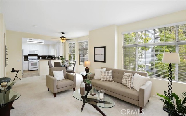 THIS BEAUTIFUL, COMFORTABLE, LIGHT, AND BRIGHT HOME IS STEPS TO THE ASSOCIATION POOLS & CLUB HOUSE. ATTACHED ONE CAR GARAGE WITH DIRECT ACCESS AND ONE ASSIGNED CAR SPACE (#660) right outside the unit. LARGE FRONT PATIO FOR OUTDOOR LIVING. Boasting high ceiling, Upgraded new kitchen appliances and newer fridge, bathrooms with granite countertop and new sinks and faucet., breakfast bar, and gas burning fireplace for cozy gatherings. Spacious primary bedroom with walk in closet and additional 2nd closet. CONVENIENT INDOOR LAUDRY AREA. ALL BEDROOMS, BATHROOMS, LIVING ROOM, KITCHEN AND DINNING ROOM ON THE SAME FLOOR. THE COMMUNITY OFFERS, clubhouse, two pools, hot tubs, fitness center, BBQ areas. Walking distance to Town Center restaurants, shops, movie theatre and parks. Refrigerator,Washer and Dryer are included.
