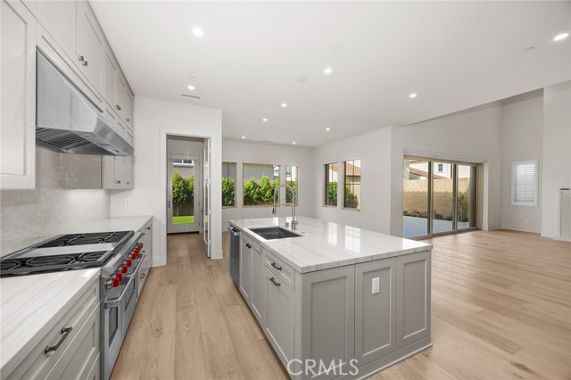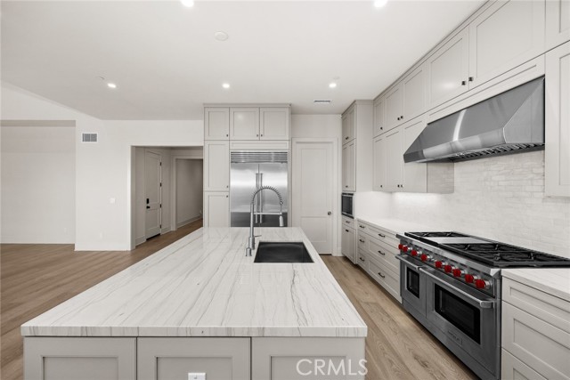 Nestled on a single loaded street within the prestigious gated enclave of The Groves at Orchard Hills, this newer home offers an exceptional blend of privacy, luxury and functionality. Appointed with $300,000 in designer upgrades, this residence features 4 bedrooms, 4.5 baths, with 3,361 sqft living space on a 5,130 sqft lot, presenting avocado orchard view surrounded by nature. Walking through the front door, you’ll pass by the downstairs bedroom and full bath with upgraded shower wall, flooring and floating mirror. Louvre Collection Aged French Oak hardwood throughout the first floor. Spacious living room with high ceiling and cozy fireplace, sliding door to a private and low maintenance backyard with trees, flowers and artificial grass. Highly upgraded gourmet kitchen with a large island, designer color cabinets, quartz countertop with beautiful movement, and selected backsplash. Top-of-the-line appliances like Sub Zero 42'' French door built-in refrigerator, Wolf 48'' Stainless steel 6 burner gas stove with griddle, double oven, microwave, single basin sink, and luxury faucet. Prep kitchen with Wolf stove, sink, custom shelf and glass French door to the yard, better than the model! Dining room with picture window. Upstairs you will find an enclosed loft, perfect for a library/den/family room. Expansive primary bedroom, bathroom with double sinks, free-standing tub, shower room with wall-to-wall tiles, two walk-in closets and storage cabinets. Next, you’ll encounter 2 en-suite guest bedrooms with amazing avocado orchard views, offering relaxation and privacy. One of the guest rooms has a private balcony. The large laundry room is designed to feature a deep sink and ample cabinet storage space. Attached two-car garage with epoxy flooring. Paid off solar. Close to award-winning Tustin schools. Resort-style community amenities include swimming pools, club house, tot lot, barbecue and picnic table, tennis court, basketball court, etc. This house is a must see!