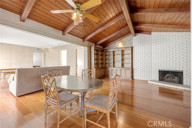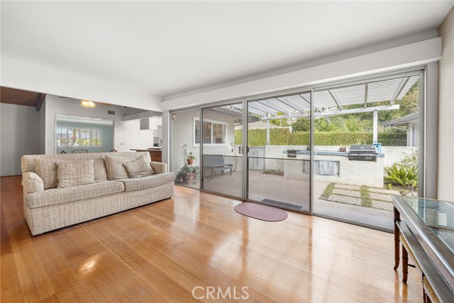 Built in 1964 this Country Hills single story home is located on a cul-de-sac, north facing and easy to access with only a small half step on the front entry. Situated to the right side of the cul-de-sac, cars driving into cul-de-sac will not disturb occupants in the evening and is good feng shui. The landscape is nicely designed with grass and shrubs lining a walkway from the driveway to the front door. It has a good feeling from the street. Walking through the entry, there are vestiges from the 1960's such as the decorative metal panels on the exterior and just inside the entry. Along one entry wall is a divided floor to ceiling mirror which makes the entryway to the living room space seem larger. The floorplan is very open. Across the formal living area is a large picture window with plantation shutters and mountain and hills views. This leads into the family or country kitchen area which includes a remodeled kitchen with soft close doors and drawers. Next to the dining area is a library/sitting area or den with fireplace and built in shelves and cabinets. Beyond the kitchen and sitting room, is the family room which offers an expansive view of the side patio with two huge sliding doors and two more glass windows alongside them. The family room opens to a generous covered patio which when put all together says openness, light, airy and terrific for large get togethers. The detached garage and driveway may also be used for additional outdoor gathering space. Adjoining the family room is a half guest bath, a bedroom and a bonus room/office/crafting room. To the right of the entry is the bedroom wing with 3 bedrooms and 2 baths. The hall bath has two vanities and a bathtub with shower. The hall offers 3 storage closets and a linen cabinet providing LOTS of storage. Outside the primary bedroom is a wood deck and a waterfall feature that currently has no water but would be lovely to get operating again as the cascade of water provides a soothing, calming atmosphere. It might even help you fall asleep. The hill at the back puts your neighbors up higher creating a private feeling. This is A great home for now to enjoy as is or you could try your hand at some more modern updates. And, with one larger remodel you may have a home to live in well into your later years, like this owner did since 1979. Welcome to Country Hills.
