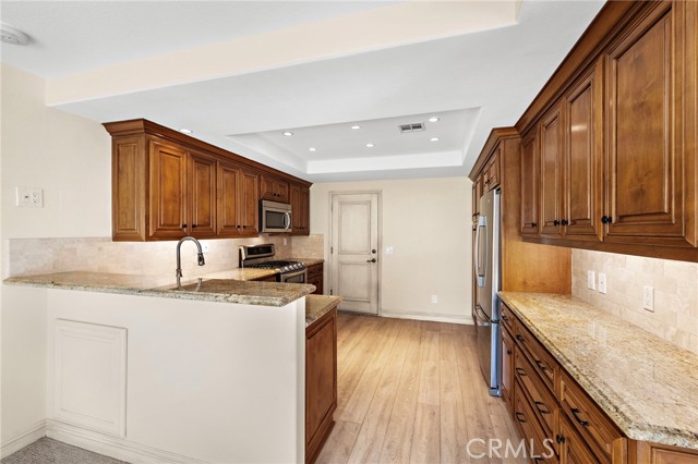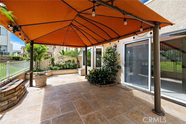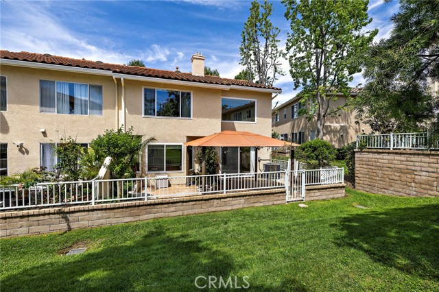 Gated Laguna Niguel condominium community featuring this beautifully located 3-bedroom, 2.5-bath home in Village Niguel Gardens. Ideally situated on an end-unit cul-de-sac, this residence offers one of the largest enclosed back patios in the community with a gorgeous park-like view—an exceptional and hard-to-find setting. The private orientation of the backyard enhances the peaceful, secluded feel, while the interior location provides added quiet and privacy. This popular floor plan showcases high ceilings and a spacious, open feel, along with a direct-access 2-car garage. The home offers numerous quality upgrades throughout, including remodeled cabinetry, countertops, and a beautifully updated primary bathroom with walk-in shower and dual sinks. Most windows have been replaced with dual-pane windows, and the property has been repiped. Select windows are enhanced with custom remote -controlled Hunter Douglas blinds, adding convenience and a touch of sophistication. The home has been meticulously maintained and reflects true pride of ownership. A wonderful opportunity for a new owner to further personalize and enhance with fresh, lighter tones and updated flooring to suit their own style.