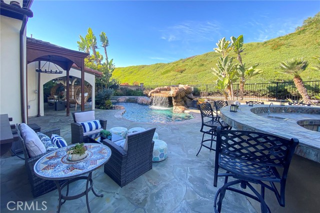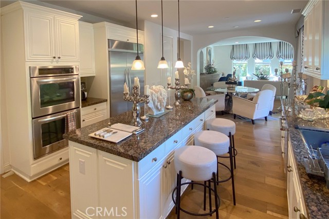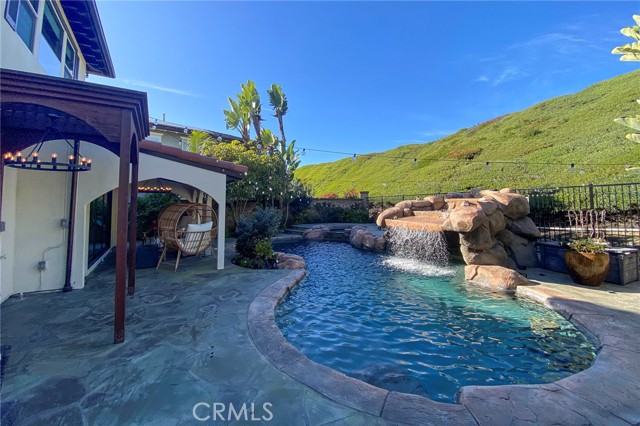 This exquisite, beautifully remodeled home is offered fully furnished, including designer furniture throughout, creating a true turnkey luxury living experience. Located in the prestigious gated community of Pacifica San Juan, this elegant two-story residence features 5 bedrooms, 5 bathrooms, a spacious bonus room, and a 3-car garage. The formal living and dining areas showcase refined details and open to a private patio with a charming fountain. The light-filled family room offers a cozy fireplace and overlooks the resort-style backyard. The gourmet kitchen is equipped with a large center island, 8-burner cooktop, built-in refrigerator, granite countertops, walk-in pantry, and a bright breakfast nook. The downstairs room provides a versatile space ideal for a home office or den. The luxurious primary suite features sweeping hillside views, a generous walk-in closet, soaking tub, walk-in shower, and dual vanities. Secondary bedrooms are spacious and well-appointed. The backyard is an entertainer’s dream, complete with a saltwater pool and spa, grotto, waterfall, built-in BBQ, fire pit, and custom lighting. Community amenities include pools, spa, gym, BBQ area, and cabanas. Conveniently located near beaches, shopping, dining, and top-rated schools.