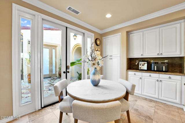Enjoy panoramic views of Irvine, Newport Beach, and the sunset from the comfort of your backyard while grilling on your built-in BBQ. This classy house is endowed with two suites on the first floor, each with its own bathroom. In addition, a casita for guests sits outside the main house, featuring its own thermostat and bathroom. Other highlights include wooden floors throughout and Subzero refrigeration.