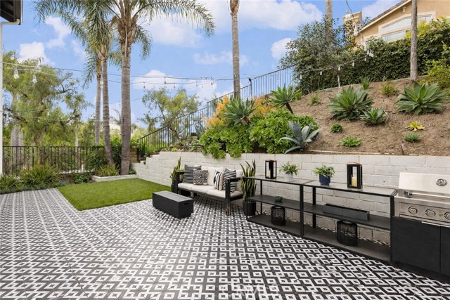 Thoughtfully upgraded with designer details at every turn, this extensively improved home offers a rare opportunity to enjoy a fully updated residence in guard-gated San Joaquin Hills. From the moment you step inside, the living room creates an inviting first impression. The space flows seamlessly into the family room in a beautifully open layout enhanced by the removal of the wall between the living and family rooms. Custom built-in cabinetry and a fireplace with designer tile create a warm and comfortable setting for everyday living. Just beyond, the dining room becomes a statement space with designer wallpaper, a Mitzi chandelier, and a custom built-in dining bench designed for intimate meals and memorable gatherings. The chef’s kitchen serves as the heart of the home, showcasing Carrara marble countertops, an Italian glass tile backsplash, white Shaker cabinetry, a 6-burner Wolf range, Viking hood with heat lamps, double ovens, Bosch dishwasher, wine refrigerator, and a stainless steel farmhouse sink with reverse osmosis filtration. French doors extend the living experience outdoors to a thoughtfully designed backyard with designer tile hardscape, artificial turf, and a modular BBQ station ideal for year-round entertaining. The main level features a flexible bedroom with a built-in Murphy bed and an updated Carrara marble bathroom, ideal for guests, multigenerational living, or a private office. Upstairs, the loft addition offers versatility and may serve as a sixth bedroom, providing a private retreat with iron and glass doors, custom media cabinetry, and a built-in workstation. Secondary bedrooms include custom closet systems and tailored designer finishes. The spacious primary suite features a striking slat feature wall, built-ins, and a beautifully updated bath with quartz countertops, white Shaker cabinetry, seamless glass shower, and designer flooring. Recent improvements include a full PEX repipe, newer AC condenser, and updated interior and exterior paint. Located in the guard-gated community of San Joaquin Hills, residents enjoy two resort-style pools, park, playground, and basketball court, all minutes from coastal beaches, shopping, and dining. The home is served by Aliso Niguel High School, ranked #1 among Capistrano Unified School District high schools by U.S. News & World Report. Opportunities like this in San Joaquin Hills are limited.