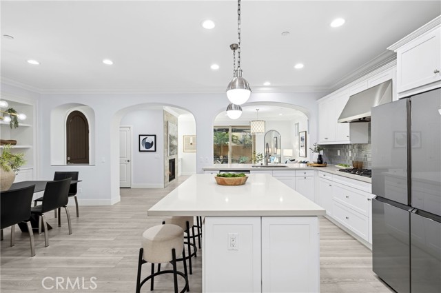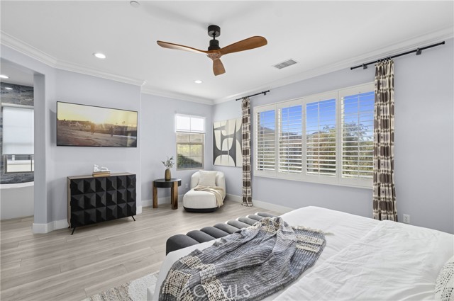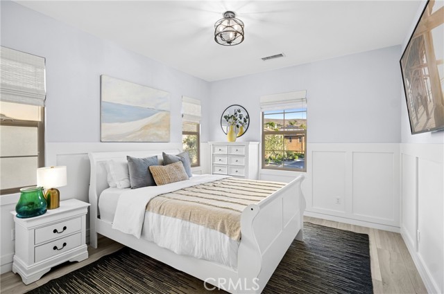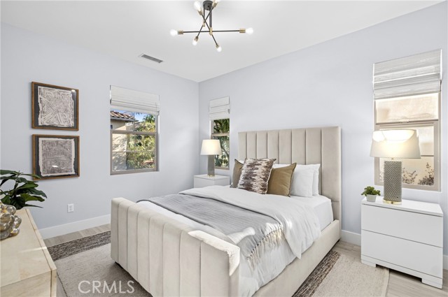Located in the gated community of San Juan Hills Campanilla, this extensively upgraded detached home supplies an open-concept floor plan featuring 3 bedrooms, 2.5 baths, and a spacious loft with a built-in desk - ideal as a home office or easily convertible to a 4th bedroom. The gourmet kitchen highlights white custom cabinetry, quartz countertops, glass subway backsplash, stainless steel appliances, Café refrigerator, center island, and dual breakfast bars. The living room offers custom built-ins, a redesigned fireplace, and dual sliders creating a seamless indoor/outdoor flow. Upstairs, the primary suite showcases a walk-in California Custom Closet and a spa-inspired bath with a dual-sink vanity, separate soaking tub, and glass-enclosed shower. Two additional bedrooms share a beautifully upgraded guest bath featuring porcelain and quartz tile, an extended shower, Hansgrohe fixtures, and Toto toilets. The versatile loft serves perfectly as a playroom, media room, gym, or office. Additional enhancements include new luxury flooring and baseboards, upgraded fixtures and lighting, ceiling fans, Nest thermostat, hardwired alarm system, interior paint, custom window coverings, solar panels, and a finished garage with epoxy floors and built-in cabinetry. The private backyard is designed for entertaining with custom hardscape, lush landscaping, patio cover, and a putting green. Community amenities include a playground, beach volleyball court, sports court, and picnic area. Low HOA, low tax base, and no Mello-Roos. Conveniently located minutes from downtown San Juan Capistrano, Dana Point, and local beaches.