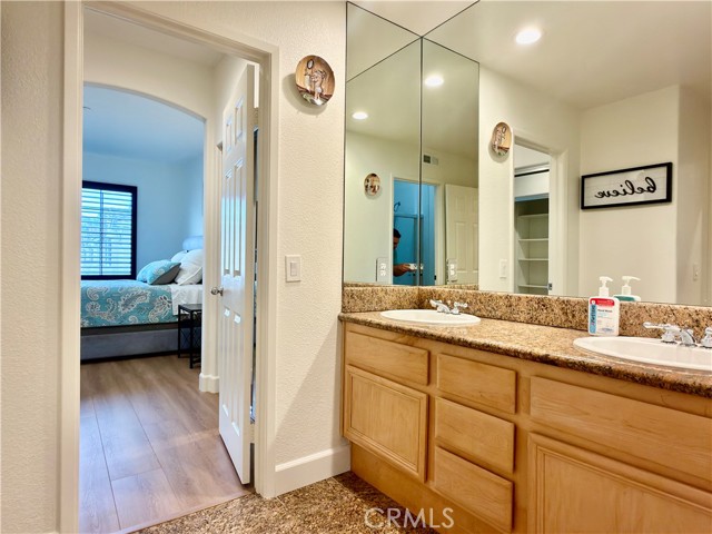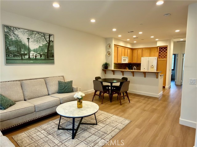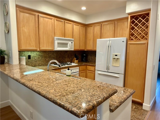Experience comfort and style in this fully furnished condo with stunning hillside views from your private balcony. Featuring luxury vinyl and granite flooring, fresh paint, and an open-concept layout, this home is perfect for relaxing or entertaining. The kitchen offers ample storage, under-cabinet lighting, and a breakfast bar. The primary bedroom includes dual wardrobes and a remodeled bath with dual sinks and a walk-in glass shower, while the second bedroom with built-in cabinetry can double as an office. Enjoy the convenience of an attached garage with epoxy flooring, EV charger, extra parking space, and included washer, dryer, and refrigerator. Community amenities include a pool, spa, and playground—just moments from top-rated schools, parks, and trails. Available fully furnished with flexible month-to-month lease options.