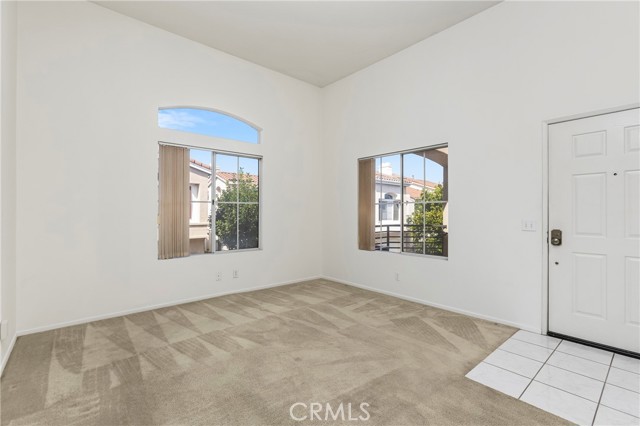 Costa Brava upper unit condo in scenic Laguna Niguel. Gated entry leads into a private sunny patio. Custom front door leads into the open living room with gas burning fireplace. High vaulted ceilings throughout the main living and bedroom spaces allow for volume and space. As an end, upper unit, windows on sides and front allow plentiful natural light throughout. A dedicated dining area is off the kitchen. The kitchen has convenient appliances and good counter space. Primary bedroom with en suite bathroom, two mirrored sliding closets. The second bedroom has sliding closet storage and hallway bathroom with shower over tub. Additional amenities include a whole house repipe, updated furnace and air conditioning systems. Separate laundry room with washer and dryer hookups plus storage cabinetry. One car garage parking and guest parking as available. The Costa Brava community has a beautiful pool and spa complex conveniently down the path from this condo. Optional membership to The Club at Rancho Niguel right up the street, offering tennis, pickleball, volleyball and racquetball courts, in addition to pools, gym, playground and picnic areas. Another highlight of this area is being a block from the Laguna Niguel Regional Park, featuring acres of nature surrounding a 44-acre lake and the site of the city fireworks show every 4th of July. Restaurants, shops, high rated schools and easy access to 73 and 5 freeways are all within minutes, providing an outstanding location and opportunity!