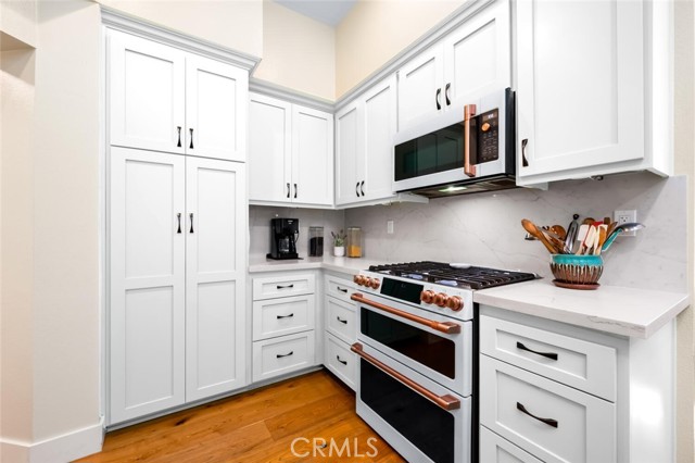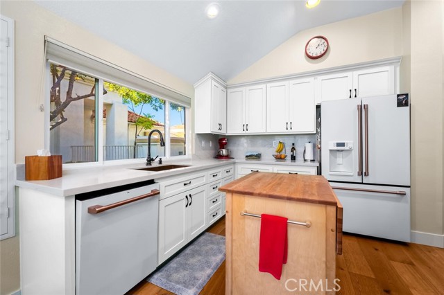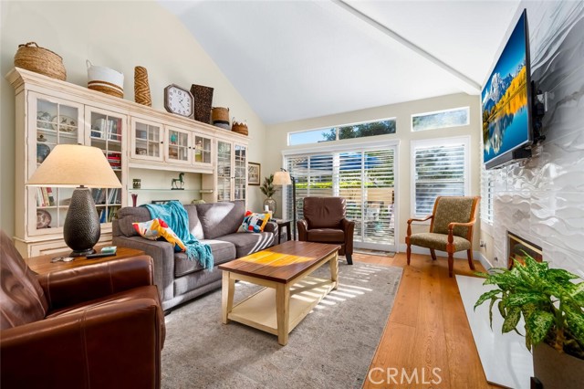 One of our favorites and soon to be yours within the 55+ Palmia community! Single Level, Two Bedroom PLUS Den/Office & Two Full Baths. This one is a Charmer with a Delightful Location and Fabulous Floor Plan. Entry way leads to a Great Room with Vaulted Ceilings and an Updated floor to ceiling Fireplace surround. Office/Den (no closet or door but could be added) is toward front of home with Bedrooms on opposite wings. Home features a FABULOUS REMODELED Kitchen with newer cabinetry, Quartz countertops, and GE appliances with Upgraded copper handles. Kitchen has a charming Nook for dining, Soft close Cabinetry, Light and Bright with several Windows overlooking the Greenbelt. Beautiful French Oak hardwood flooring, Plantation Shutters, and Ceiling Fans adorn the home. Decorator Wall in Secondary Bedroom. Primary Bedroom has Patio Access and also a REMODELED Ensuite bath - Walk in Closet, Dual Vanities and Shower. Both bedrooms have closet organizers to maximize the space. The Yard features areas for planting, dining and enjoying the outdoors. Patio Wall was built higher for added privacy and there is a gate direct for easy access to Greenbelt. The 2-Car Garage has an extended area for Washer/Dryer, Built in Cabinetry and Epoxied garage floor. Additional features include hideaway screen at front door, the home has been re-piped, newer water heater, newer heating/air conditioning units and Air ducts. Residents enjoy the Palmia Amenities including Clubhouse, Fitness Center, 3 Swimming Pools/Jacuzzi's, 18-hole Putting Green, Pickleball and Tennis Courts, Bocce, Shuffleboard +++. Mission Viejo Lake is also part of the Homeowners Association Amenities. This home is FABULOUS!