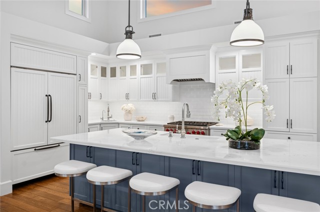Welcome to the definition of Corona del Mar. A rare chance to own in the highly-sought-after Shore Cliffs community, 301 Evening Canyon embodies the effortless lifestyle that defines this iconic enclave. Set on a coveted spacious corner lot, the home blends timeless architecture, authentic style, and fresh updates throughout. Inside, soaring two-story ceilings and custom French oak floors create an airy sense of scale and warmth in the heart of the home. The kitchen showcases a massive center island with seating, a Wolf refrigerator and range, Bosch dishwasher, warming ovens, and a Thermador-equipped butler’s pantry and laundry room. Four bedrooms are thoughtfully arranged, including multiple ensuite rooms and others with direct access to the private backyard—offering flexibility for guests, family members, or a home office. Fresh paint, new bedroom carpet, and refined finishes highlight the home’s careful maintenance and classic appeal. Ample storage is found throughout the home, including generous closets and built-in cabinetry. Outdoors, mature hedges offer exceptional privacy, framing a spacious front courtyard, and a spacious backyard with a large turf area, expansive flat patio, and a charming detached shed. Enjoy abundant parking, easy access to CdM Village’s boutiques, cafés, and restaurants, and a premier location just steps from the community's private beach. Here, in one of Southern California’s most desirable neighborhoods, the weather is unmatched, the surf is sublime, and the schools are top-rated, making everyday feel like a getaway. This is more than a home; it’s the key to a Shore Cliffs lifestyle that is truly one-of-a-kind.