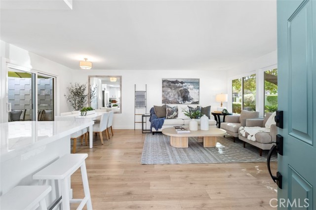 Beautifully Remodeled Light-Filled Villa Nova – Single Level Living. Welcome to 3025 Calle Sonora #D, a rare single-story, single-level Villa Nova model in Laguna Woods. Perfectly positioned on a light-filled corner location surrounded by lush greenery, this home offers exceptional privacy while remaining conveniently close to Gate 7. Recently remodeled—and never lived in since the remodel—this 2-bedroom, 2-bath residence combines comfort, elegance, and modern upgrades. With no stairs and direct access from the parking lot, it is handicap-friendly and easy to navigate. Step through an iron-gated entryway into a charming private courtyard, leading to a stylish new front door. Inside, you’ll be welcomed by a bright and airy floor plan featuring smooth ceilings, recessed lighting, fresh paint, luxury vinyl plank flooring, and double-pane windows—a perfect blend of style and functionality. The brand new open-concept kitchen is a true showpiece, boasting quartz countertops, custom soft-closing cabinetry, and top-of-the-line stainless steel appliances. Adjacent to the kitchen, the dining area and atrium invite in natural light and fresh air, enhancing the home’s indoor-outdoor flow. The spacious primary bedroom features mirrored wardrobe doors and a generous closet, while both bathrooms have been beautifully upgraded with quartz-top vanities and designer-tiled showers. The secondary bedroom also offers mirrored closet doors, a large closet and abundant natural light—perfect for guests or a home office Additional highlights include: • Private patio with extra storage closets • One carport with additional storage • Convenient laundry facility just steps from the front door • AC unit and heat for year-round comfort As a resident of Laguna Woods Village, you’ll enjoy world-class amenities including a 27-hole championship golf course, a 9-hole executive course, 7 clubhouses, 5 pools, art studios, hobby workshops, fitness centers, social clubs, and so much more—all within a secure, 24/7 guard-gated community. Nearby shopping, dining, and coastal destinations add to the appeal. This rare remodeled Villa Nova is move-in ready and waiting for its first new owner—don’t miss the opportunity to make it yours!