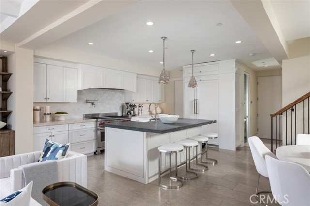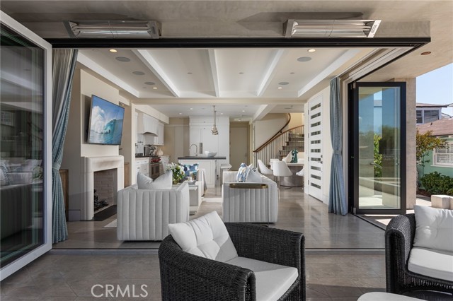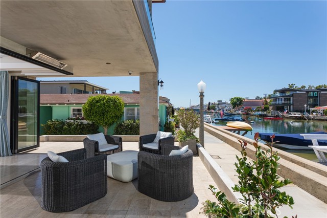 An exquisite Balboa Island residence poised to deliver the very best of Newport Beach living. Set within the coveted "Little Island," this pristine waterfront oasis offers 30’ of frontage and a private dock accommodating a vessel up to 18’. Swoon-worthy interiors by renowned designer Michael Smith span approximately 2,181 square feet over three levels and incorporate stylish touches such as hand-carved fireplace mantels, bespoke draperies, custom window treatments, wall coverings, and designer faucets/fixtures throughout. Anchored by a custom fireplace, the open-plan living area is accoutered with beamed ceilings, accordion glass doors, stone flooring, built-in shelving, and electric Lutron shades that open to reveal a soothing backdrop of the bay. Outside, entertain and dine al fresco in the heated covered patio made for year-round enjoyment. Tailored to modern tastes, the chef’s kitchen is dressed in stone countertops, subway tile backsplash, white shaker cabinetry, heated floors, and built-in Wolf and Sub-Zero appliances. Rounding out the main level is a breakfast nook, half bath, and 84-bottle wine room with storage racks. A curved wooden staircase rises to the second level where all three generously proportioned en suite bedrooms reside including the opulent fireplace-warmed primary suite equipped with two large walk-in California Closets, spa-like bath outfitted in marble, heated floors, discrete built-in refrigerator, and accordion glass doors that lead to a private wrap-around balcony with heated flooring. Crowning the home on the third floor is an exercise room with an en suite bath and an executive office featuring wood flooring and lighted, built-in display cases and cabinets. Beyond, the view roof deck is the idyllic entertainment venue with covered and uncovered spaces serviced by a kitchenette for easy hosting. Additional highlights include an ELEVATOR servicing all three levels, Control4 AV and lighting system, Hikvision security camera system, Electrolux washer/dryer, TOTO toilet/bidet, electric-powered blinds in living room and primary bedroom, and two-car garage with built-in cabinets/storage. Set near picturesque beaches, shopping, dining, Lido House Hotel, and championship golf courses, in an exclusive waterfront community, the dream comes alive at 308 Grand Canal.