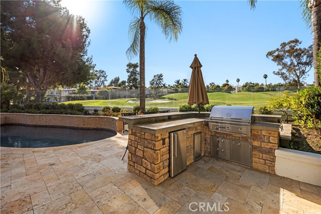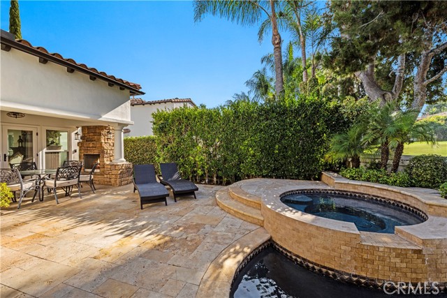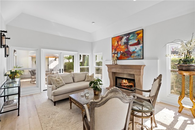 Experience refined living in this golf course estate, nestled on the 6th hole of the prestigious Marbella Country Club. This exquisitely updated residence blends timeless elegance with modern comfort. A gracious inviting foyer introduces the home, leading to a sun-drenched formal living room where expansive windows and high ceilings create a light filled, welcoming ambience. Adjacent is an elegant dining area, perfect for memorable gatherings and seamlessly flowing outdoors to the poolside oasis. The thoughtfully designed chef's kitchen showcases an expansive island with ample seating for casual dining, quartz countertops, premium stainless appliances, custom cabinetry and a bright breakfast nook overlooking pool and golf course views. The kitchen extends into the informal living area anchored by a sophisticated bar for effortless entertaining. The oversized primary suite serves as a private sanctuary, featuring a cozy double-sided fireplace, spa inspired bath with soaking tub and dual head shower, generous walk-in closet, and private balcony with sweeping views. Two additional bedrooms in the main house - or an optional office and bedroom - share a beautiful Jack-and-Jill bath. Resort-style outdoor living includes a sparkling pool and spa with waterfall, built in BBQ and bar, and a covered area with fireplace - all framed by fairway views. The detached casita/guest house above the second 2 car garage - perfect for golf cart parking - offers its own entrance, private bath with washer/dryer and balcony - ideal for guests or multi-generational living. A truly exceptional residence offering luxury, comfort, and an unparalleled golf-course lifestyle.