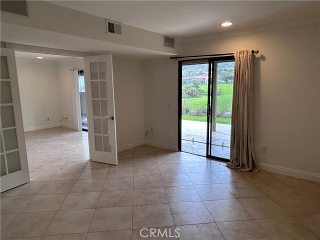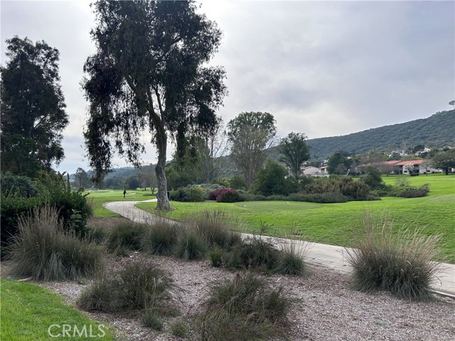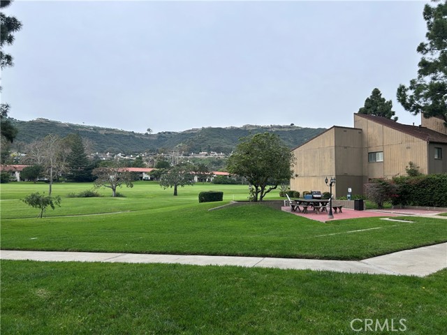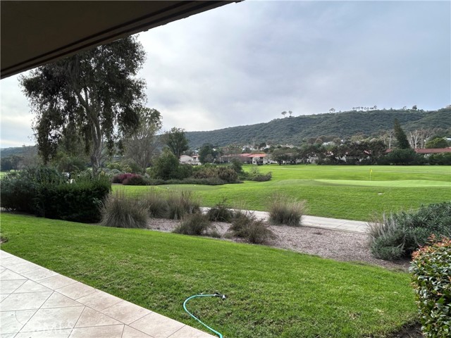 This lower-level end unit condo offers stunning views of the 2nd and 3rd holes of El Niguel Golf Course, with tranquil vistas of the green, fairway activity, and the surrounding valley and hills. Featuring three spacious bedrooms and two baths, the home boasts an open-concept family room that flows into a large patio area complete with a refreshment bar—perfect for relaxing or entertaining. The kitchen showcases oak cabinets with granite countertops, stainless steel appliances including a stove, microwave, and dishwasher, and recessed lighting. Bathrooms feature tiled showers and baths, while the living areas are finished with tile flooring and the bedrooms are carpeted. French interior doors add a touch of elegance throughout. Central air conditioning ensures year-round comfort, and a stackable washer and dryer are included, though their condition is unknown and no warranty is provided. A two car garage is conveniently located nearby, and the community offers beautifully manicured grounds, a pool, BBQs, and picnic tables just steps from the unit. Residents also have the option to join the El Niguel Country Club, Golf Club, Tennis Club, and Swim Club. Located close to beaches, parks, schools, shopping, restaurants, and major freeways, this condo combines peaceful golf course living with everyday convenience. Having been a rental property for several years, the unit presents an excellent opportunity for updates, including fresh paint and new flooring, to restore its full potential. It is being sold in its current "as-is" condition.