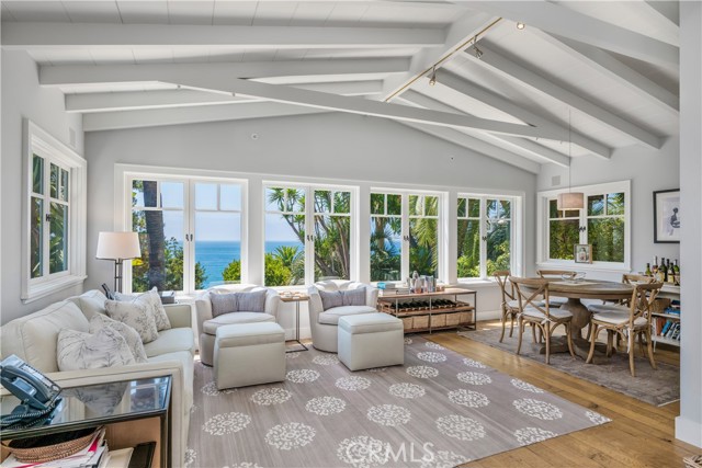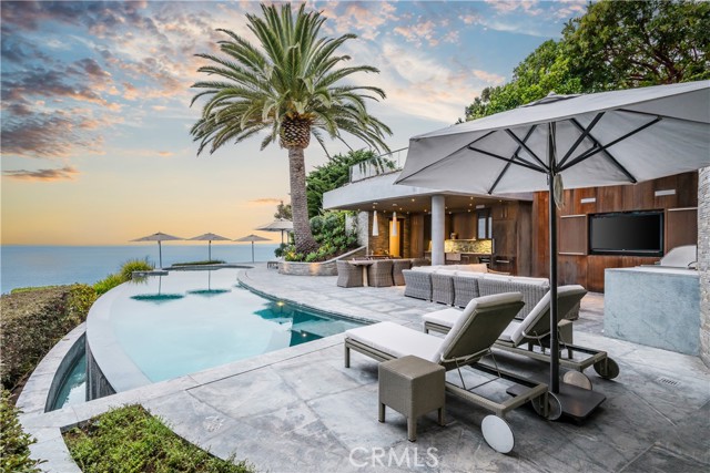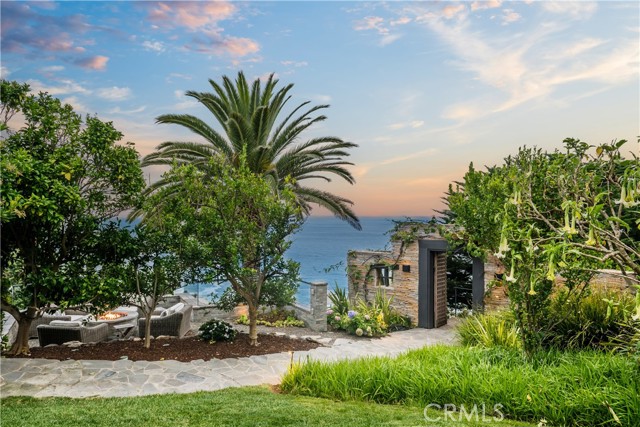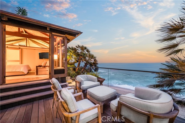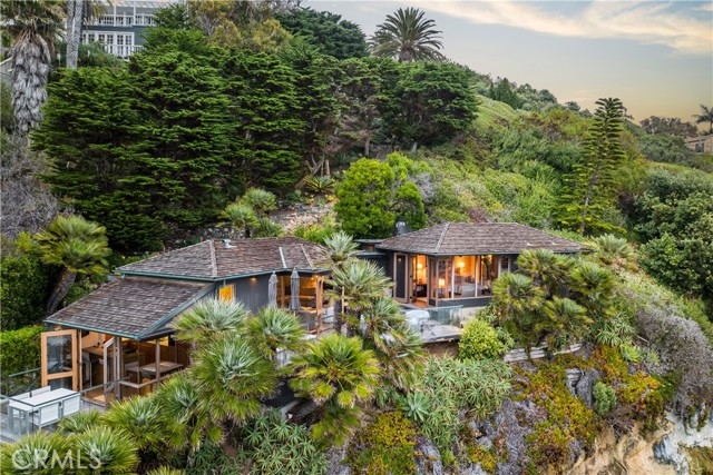 The true feeling and spirit of old Laguna lives on - in the Cypress Compound. Privacy, architectural excellence, and untouched natural splendor converge on maturely landscaped coastal acreage to create a legacy estate. Perched above Thousand Steps Beach, this singular oceanfront compound has been mindfully renovated, with all three structures retaining their original historic footprints. The irreplaceable Chris Abel-designed main residence, anchored by a Monterey Cypress, rests on a bluff 70 feet above the surf, offering seclusion and uninterrupted coastline vistas. This single bedroom architectural gem consists of a spacious living salon, a kitchen overlooking the sand, and a sizable deck for all-season enjoyment. Two fully-equipped bungalows serve as a well-appointed extension of the primary quarters. The upper features a one-bedroom apartment while the lower structure offers a two-bedroom flat on the top level and a one-bedroom accommodation with a large multipurpose living room below, all with individual kitchens. The pristine grounds have been consciously landscaped with native plants and mature trees, creating an unspoiled retreat. The estate’s amenities are truly remarkable. An exclusive double-gated staircase with an observation deck leads to a roped-off, 15 ft deep privately owned beach area which extends along the oceanfront property line. Thoughtful consideration was given to not overbuilding this incredible parcel yet it does not lack incredible modern improvements: a 45+ ft long infinity edge pool with first-row views of the Pacific was added in recent years. Adjacent to it, a state-of-the art outdoor kitchen and open air cabana create a perfect setting for high-level entertaining. Those seeking more active recreation will also enjoy the quarter-sized basketball court. Beyond its boundaries, this enclave offers a coveted location near some of the most prestigious resorts in Orange County: the Montage, Ritz Carlton and St.Regis are all merely miles away.