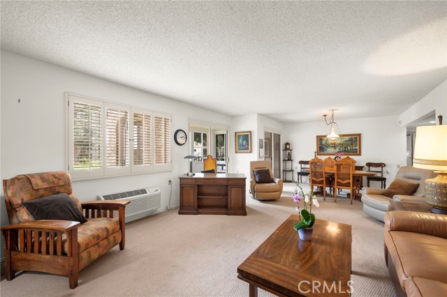 This 2 bedroom and 2 bathroom spacious condominium is located on a hill in the prestigious age 55 and over community of Laguna Woods. As you pass through the double gated entry, you are greeted to spacious living and dining rooms. The kitchen has a window to let in fresh air and light. The enclosed balcony is a great place to relax, unwind and take in the gorgeous landscape and trees. This popular floor plan has each bedroom on opposite sides of the living spaces for added privacy. The primary bedroom has a wall of closets and a ceiling fan. The En Suite bathroom features a vanity with a seperate shower/tub/toilet room. The second bedroom is a good size and makes a perfect guest room, office or hobby room. The guest bathroom in the hall has a stall shower. This building has subterranean parking with easy elevator access right to your floor. You can also access the home via the lobby with no stairs or step and no need to take the elevator. There is even more storage in the parking space. The buidling features a game/activity room. Laguna Woods is one of the most prestigious age 55+ communities in Orange County. In Laguna Woods you have access to: bus system around the community & to area shopping, restaurants, medical facilities; 5 pools & 4 hot tubs; golf, tennis, library, 7 clubhouse, 200+ clubs, 3 fitness centers, theater, horse back riding/stables, garden centers, basketball, card rooms, billiards, bocce ball, Emeritus classes & more!