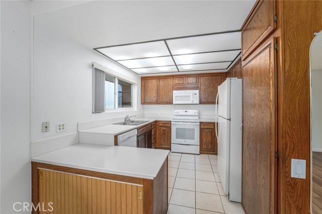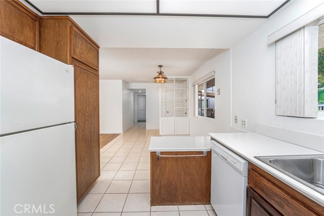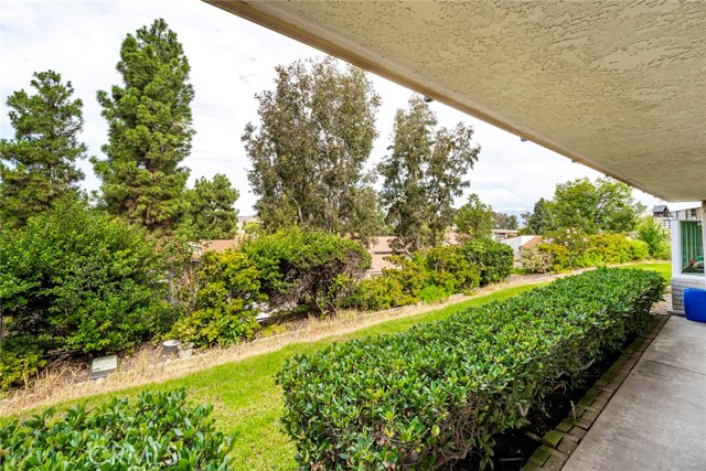 Welcome to your Catalina retreat in Laguna Woods Village. This spacious two-bedroom, two-bath home offers 1,188 square feet of comfortable living with a sought-after floor plan designed for ease and function. Located in a quiet setting, the property includes a private detached single-car garage and opens to lush greenery with scenic views of the Saddleback Mountains. The living room is filled with natural light and features wide sliding glass doors that lead to a private patio, the perfect spot to relax or entertain while taking in the mountain backdrop. The dining area flows seamlessly into the kitchen, which is outfitted with traditional cabinetry, a double sink, and white appliances. The primary suite includes its own bath with a walk-in tub and thoughtfully placed grab bars for safety and convenience. The second bathroom offers a walk-in shower, making both spaces practical and accessible. Two generously sized bedrooms provide flexibility for overnight guests, a home office, or a creative space. Additional features include an in-unit laundry with full-size washer and dryer, tile and wood-style flooring, fresh paint, and ample storage throughout. Living in Laguna Woods Village means more than owning a home—it means enjoying one of the premier active adult communities in Southern California. Residents have access to a 27-hole championship golf course and a nine-hole executive par-three course, five swimming pools, tennis and pickleball courts, modern fitness centers, and clubhouses that host activities, classes, and social gatherings. The community also features an equestrian center, a performing arts theater, and over 250 clubs for every interest imaginable. This Catalina Model combines a comfortable floor plan, beautiful views, and resort-style amenities, offering not just a home but a lifestyle of recreation, relaxation, and connection.