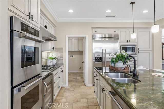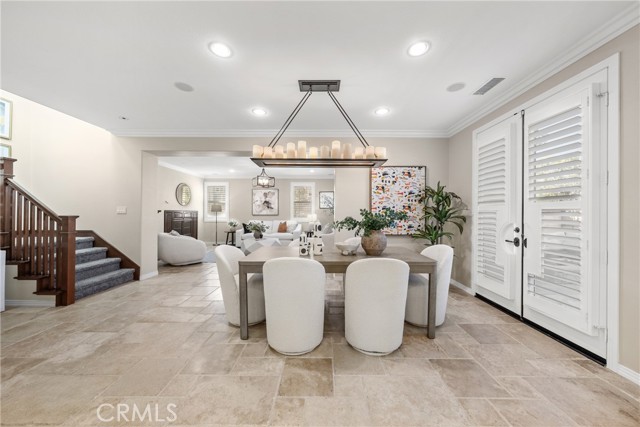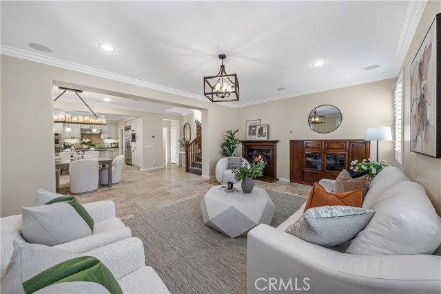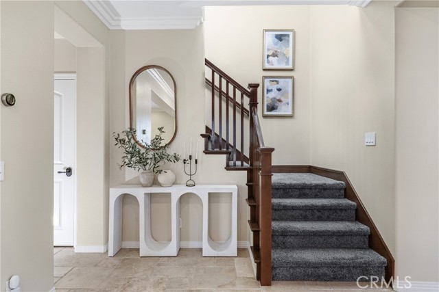 Welcome to this beautifully upgraded residence located at 35 Twin Gables in the highly desirable Woodbury, Irvine community. This sophisticated home offers 4 spacious bedrooms and 3.5 with 2,429 sq ft of living space built in 2006. The home has an exceptionally open and light-filled floor plan. At entry you’re greeted with travertine flooring on the first level, seamlessly flowing into formal living and dining areas. Gourmet kitchen is equipped with high-end appliances including a double oven, gas cooktop, wine cooler, and ample counter & cabinet. A private bedroom downstairs with its own bath offers flexibility for guests, in-laws, or a home office. Luxurious primary suite upstairs features a soaking tub, walk-in shower, dual sinks and a spacious walk-in closet. Crown molding, recessed lighting and integrated surround-sound enhance the living experience. Outdoor & backyard living is amazing at this home. Step through double French doors from the dining room to an entertainer’s backyard oasis with built-in firepit, bar-island, custom pavers and a decorative water feature. Solar panels, water softening system, and an EV-charging port in the attached 2-car garage enhance both comfort and efficiency. As a resident of Woodbury, enjoy access to multiple resort-style pools and spas, sports courts, BBQ areas, and trails including the nearby Jeffrey Open Space Trail and top-rated schools such as Woodbury Elementary School, Jeffrey Trail Middle School and Portola High School.
