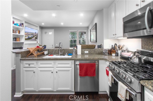 Welcome to this spacious first-floor condo, where a bright, open layout and airy design create an inviting atmosphere from the moment you step inside. The living area features a built-in entertainment system with a 65” Sony HD TV included with the rental, combining modern style with everyday convenience. Expansive windows fill the space with natural light, enhancing the warm and welcoming feel. The updated kitchen boasts stainless steel appliances, sleek granite countertops, and ample cabinetry—perfect for both everyday cooking and entertaining guests. For added convenience, a full-sized washer and dryer are included in the unit. The thoughtfully designed bedroom offers comfort and functionality, with generous closet space and plenty of additional storage throughout the home. An attached garage provides both convenience and secure parking. As part of this vibrant community, residents enjoy access to exceptional amenities including multiple pools, Jacuzzis, parks, a fitness center, tennis courts, and more. Ideally situated next to the Quail Hill Shopping Center, the condo also offers quick access to the 405, 133, and 5 freeways. The Irvine Spectrum, top restaurants, and grocery stores are just minutes away.
