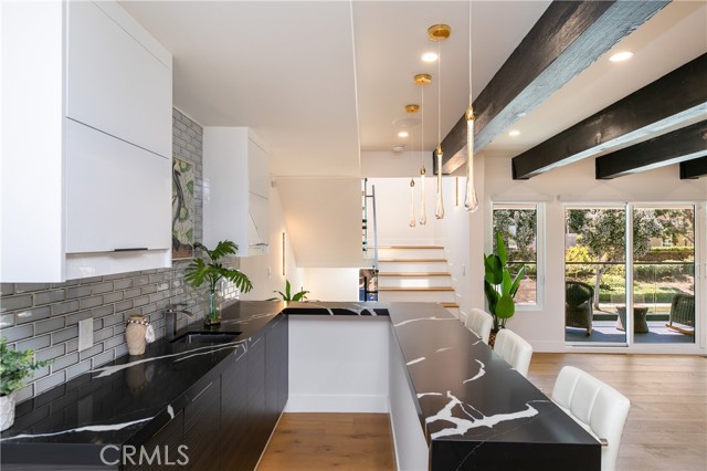 Located in Huntington Beach, Surf City! Step into timeless design and effortless luxury in this stunning residence where contemporary sophistication seamlessly elevates mid-century vibes. From the moment you arrive, double entry doors welcome you into a light-filled haven, thoughtfully curated for both relaxation and entertaining. The chef’s kitchen is a culinary dream—featuring white Euro cabinetry, Quartz counter tops, all Viking appliances, built-in wine cooler, and sleek lines that echo the home’s architectural pedigree. Exposed beamed ceilings and natural light pouring through skylights and expansive windows create an airy, open ambiance throughout. Retreat to the expansive 400 sq/ft primary suite, where a private balcony invites coastal breezes and sun-filled mornings. Indulge in the spa-inspired ensuite bath with marble flooring, boasting a luxurious rain shower, deep soaker tub, dual vanity with abalone shell backsplash and backlit vanity mirror, and a custom-designed wardrobe closet fit for a king. This exceptional home features three bedrooms and four baths and was completely renovated with attention to detail in 2023. Spanning 2,246 square feet, an open floor plan, wood floors, a custom glass staircase, and designer finishes. Enjoy indoor-outdoor living at its finest with tranquil outdoor seating areas, a zero-scape patio for effortless maintenance, and a refreshing plunge pool and spa complete with a natural rock fountain. Minutes from Surfing, Bike riding, Paddle boarding, Bolsa Chica Wetlands trail & dog-friendly beaches. This residence offers the perfect blend of coastal lifestyle, thoughtful luxury, and architectural distinction. Welcome to your modern sanctuary by the sea. Book your tour today