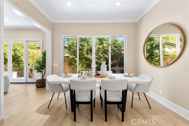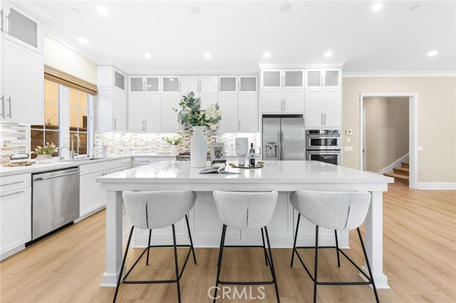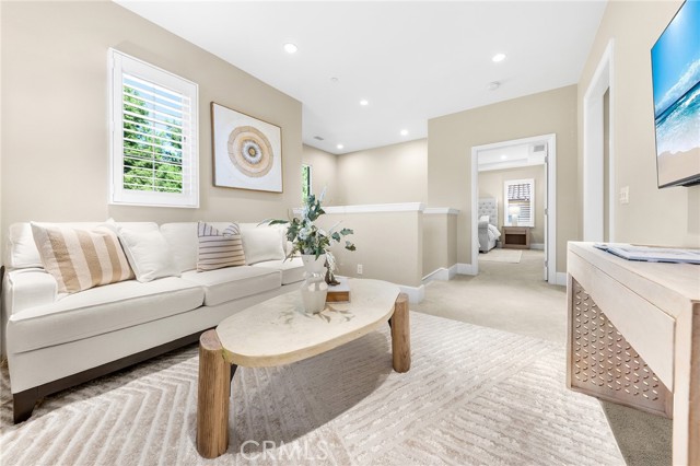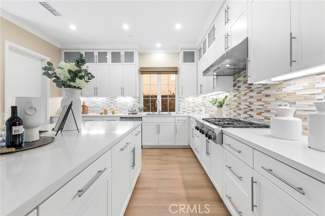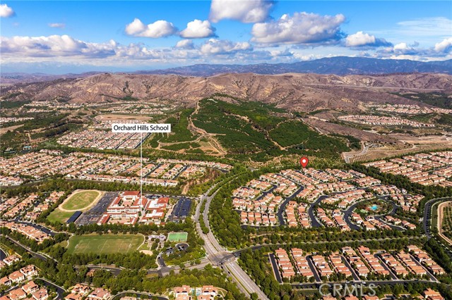 Welcome to 51 Thoroughbred, a stunning newer-construction end-unit home located on a private cul-de-sac in the desirable Strada community of Orchard Hills. This residence boasts soaring cathedral ceilings and an open floor plan, creating a bright and inviting living space. Expansive glass doors and windows open to a beautifully landscaped backyard featuring travertine flooring, a water feature, and a built-in BBQ island with seating—perfect for outdoor entertaining. The interior has been upgraded with brand-new flooring throughout, complementing the gourmet kitchen with custom tile backsplash, a large center island with seating, KitchenAid appliances, ceiling-height cabinetry, and a walk-in pantry. A convenient downstairs bedroom and full bath are ideal for guests or multi-generational living. Upstairs, a versatile loft offers space for a playroom, office, or media room. The serene primary suite includes a customized walk-in closet and spa-inspired bath with dual vanities, a soaking tub, and a separate shower. Two additional bedrooms, a full bath with double sinks, and a spacious laundry room complete the upper level. Additional highlights include a reverse-osmosis water filtration system, whole-house water softener, plantation shutters, automatic outdoor lighting and irrigation, and a garage with epoxy flooring and extensive built-in cabinetry. Residents of Orchard Hills enjoy resort-style amenities including pools, spas, BBQ areas, basketball courts, and playgrounds. Conveniently located near major freeways, toll roads, premier shopping and dining, and within the award-winning Irvine Unified School District including Northwood High School.