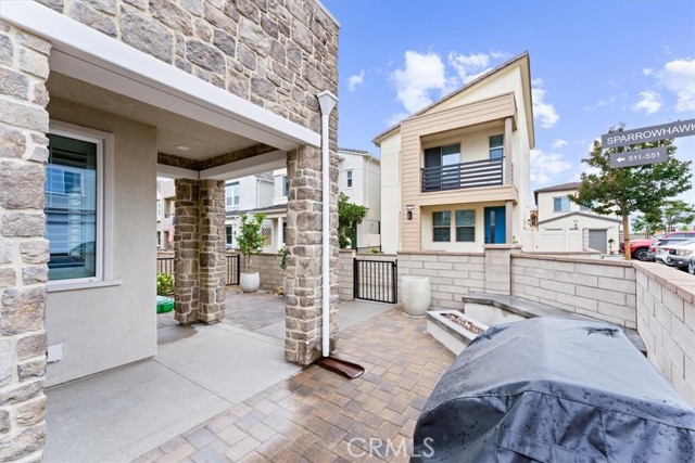 Rare opportunity to own a single family detached home with only one HOA! Corner lot, custom built gas fire pit in the private front courtyard, in the desirable community of Rancho Mission Viejo. This 2022 built home comes with upgrades, including PAID OFF solar. This home is located on a corner lot and upon entering the home, you will find upgraded wood-look tile throughout the entire main floor. The kitchen includes gorgeous granite counters, upgraded white subway tile backsplash, white cabinets with upgraded hardware, and stainless steel appliances. You will also find the powder bath and direct access to the 2 car garage. Upstairs, you will find the primary bedroom, which includes direct access to the balcony and a large walk-in closet. The primary bedroom's en-suite bathroom boasts an upgraded tile walk in shower, quartz counters, and upgraded tile flooring. The 2nd bedroom includes an en-suite full bathroom, with quartz counters and a walk in closet. The upstairs laundry designed for a stackable washer/dryer and includes built in shelving, for storage. The enclosed front yard and side yard are beautifully designed with pavers, custom built fire pit with direct natural gas line, and ready for irrigation and electrical. The 2 car garage has been upgraded with epoxy throughout. The home is centrally located within Rienda! Once a resident you can expect to enjoy all that the HOA amenities offers: local businesses, golf cart lifestyle, arcade room, pickle ball, bocce ball courts, clubhouse bar, fitness centers, local restaurants, Rancho Mission Viejo Schools, boulder pond directly across from this home and other neighborhood events including Farmers Markets. Shopping, dining, and beaches all within a short drive! Just minutes from the 241 Toll Road. Buyer to confirm all information and satisfy self with appropriate due diligence.