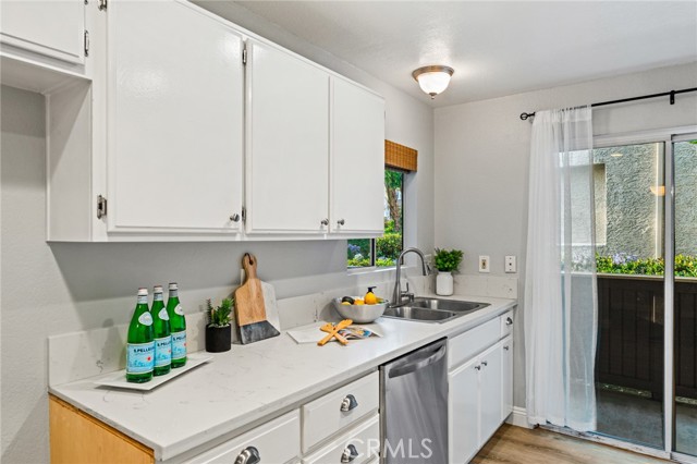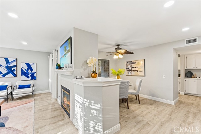 Welcome to 54 Corniche Drive, a beautifully updated ground-floor condo in the coveted, 24-hour guard-gated community of Ritz Pointe, just minutes from the sand, sea, and world-class resorts of Dana Point. This thoughtfully upgraded 2-bedroom, 2-bath home offers the ideal blend of comfort, style, and location. The open-concept living area welcomes you with a cozy fireplace and seamless access to a large, wraparound patio—perfect for morning coffee, sunset cocktails, or soaking in the ocean breeze. Just off the patio, you'll find your private laundry room, adding a layer of everyday convenience. The kitchen shines with quartz countertops, ample cabinetry, and a functional layout ideal for cooking and entertaining. Wide-plank vinyl flooring runs throughout the main living spaces, combining a modern aesthetic with easy maintenance. Both bedrooms feature brand new carpeting, oversized walk-in closets, and abundant natural light. The spacious primary suite includes a beautifully updated en-suite bath with new vanities, mirrors, and contemporary fixtures. Additional upgrades include complete home repiping in 2024 for added peace of mind. Enjoy resort-style amenities just steps away—relax at the pool and spa, stay active in the fitness center, or unwind in the clubhouse. An assigned covered carport is included for easy parking. Ideally located near Salt Creek Beach, the Ritz-Carlton, Monarch Beach Golf Links, Ocean Ranch Village, and the vibrant Lantern District, you'll have quick access to top-tier shopping, dining, hiking, and coastal adventures. Commuting is effortless with close proximity to John Wayne Airport and major freeways.