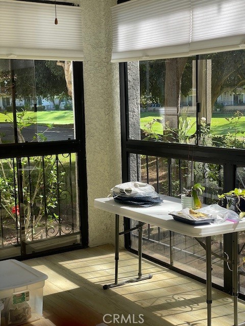 Desirable El Mirador unit with exceptional views of the green way, golf course and trees!. Very spacious unit and popular floor plan. This unit has been updated a while ago with 2 bedrooms and 2 bathrooms. Unit is located on the first floor of this elevator building with subterranean parking. You enter through privacy gates to a formal entry. The Dining Room and Living Room are open concept that expands into the enclosed patio room. Enjoy the easy care laminate flooring in the living room, dining room, tile in kitchen and bathroom areas. Kitchen has beautiful cabinets, stainless steel appliances, tile floor, recessed lighting and lots of cabinet space. Master bedroom has lots of closet space and newer flooring. Nice vanity and tub- shower. The Guest Bedroom is on the other side of the home offering lots of privacy for guests , separate bathroom with newer vanity and shower. Other features include scraped ceilings, dual pane windows, forced AC/Heating. Laguna Woods offers lots of amenities for your use and enjoyment. Private Golf Course, pickleball courts, tennis courts, clubhouses, bus transportation, swimming pools, lawn bowling greens, craft and hobby workshops, card room, billiard rooms, gym, horse stables and library, and Performing Arts Center. Come relax and enjoy!