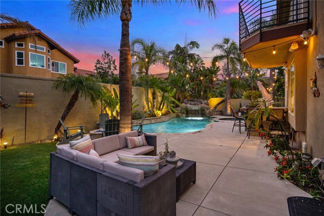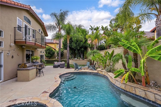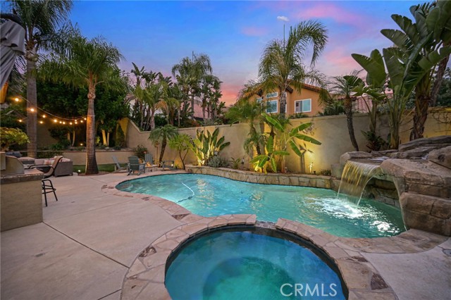 Your Gorgeous Tropical Backyard Oasis Awaits! Beautifully Updated 4-Bedroom + Office/Library and 3-Bathroom Home on a Small Cul-De-Sac Street Features a Stunning Entertainer's Backyard with Sparkling Salt Water Pebbletec Pool & Spa with Waterfall & Grotto, Custom-Built BBQ Island with Bar Top Seating & Grill, Low-Maintenance Artificial Turf, Flagstone Decking, Fire Pit and Fruit Trees, All Surrounded by Lush Tropical Landscaping - Approx 2,700+ SqFt Concerto Floorplan has a Convenient Main Floor Office/Library & Bathroom with Shower - Freshly Painted Exterior & Stamped Concrete Walkways Create a Warm & Inviting Curb Appeal - Handsome Wood Laminate Flooring Throughout the Main Level - Formal Living & Dining Rooms have High Vaulted Ceiling & Elegant Plantation Shutters - Large Chef's Kitchen Offers Ample Two-Toned Cabinetry, Silestone Countertops, Center Island, Walk-In Pantry & Breakfast Eating Nook - Kitchen Open to Family Great Room with Stylish Glass Tile Fireplace - Double Door Entry to Primary Suite with Walk-In Closet, Romantic Dual-Sided Fireplace & Private Balcony Deck with Scenic Views of Hills & Trees - Primary Bathroom has Faux-Wood Tile Flooring, New Recessed Lighting, Dual Vanities, Soaking Tub & Separate Shower - Also Upstairs are 3 Additional Bedrooms (one has a walk-in closet) and Full Hall Bathroom with Dual Sinks - Inside Laundry Room with Sink & Door to the Side Yard - Newer HVAC System (AC & Furnace) - Attached 3-Car Garage with Newer Garage Doors & Additional Parking Space in Wide Driveway - No HOA Dues - No Mello Roos Tax - Award-Winning Placentia-Yorba Linda School District, Zoned for Bryant Ranch Elementary, Travis Ranch Middle & Yorba Linda High - Easy Access to the 91 Freeway & 241 Toll Road - Also Close to Brush Canyon Park with Lighted Basketball Court, Tennis Courts, Picnic Shelter, Playground & New Pickleball Courts!