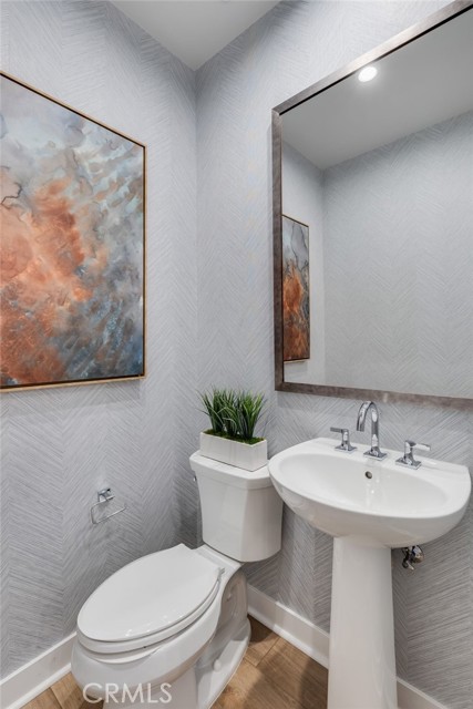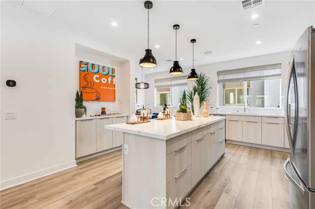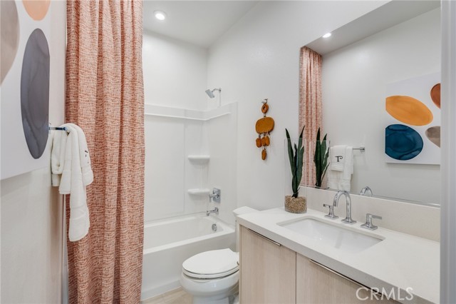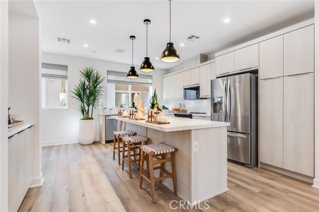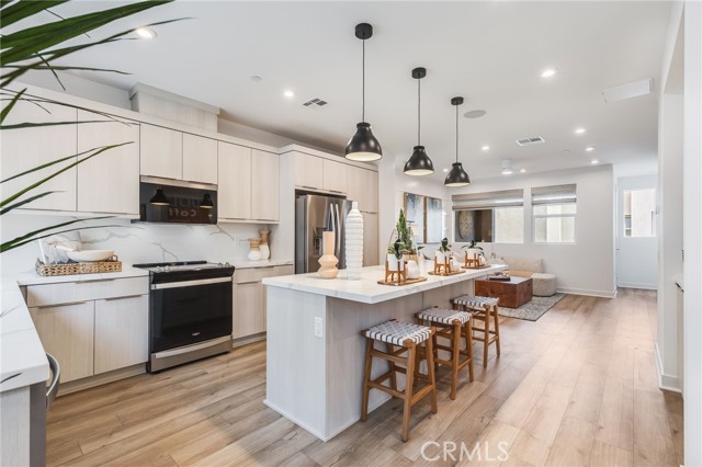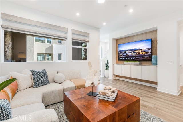 Fully Decorated and Highly Upgraded Model Home for Sale. The sophisticated Lyon 3 home design was made for modern living. A welcoming foyer opens into a flex room with a covered patio and stairs leading to the airy main living area. The elegant great room features access to a covered balcony for easy entertaining. Adjacent to a bright casual dining area, the kitchen offers a large center island, wraparound counter space, and a useful pantry. On the third floor, retreat to the beautiful primary bedroom, complete with a walk-in closet and a lovely bath with a dual-sink vanity, a luxe shower, and a private water closet. Secondary bedrooms are located down the hall from a full bath. Additional highlights include a powder room on the second floor, bedroom-level laundry, and an entrance off the garage. Designed with Toll Brothers' signature finishes, this home showcases hand-selected designer features for a unique, elevated living experience. Enjoy community amenities, including two covered barbecue and picnic areas. Located in the heart of Orange County, this home is minutes from Main Place Mall, Historic Downtown Santa Ana, the Discovery Cube, Santa Ana Zoo, and Tustin Market Place, with easy access to major freeways. NO MELLO-ROOS tax, low HOA dues, and zoned for Tustin Unified School District! MOVE IN READY!