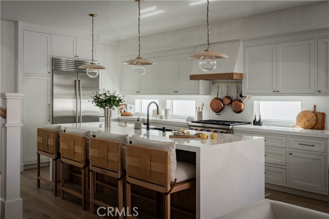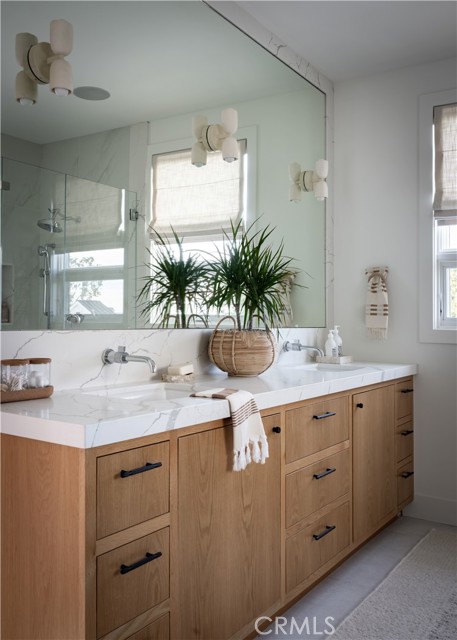 Featured in Architectural Digest in 2024, this striking contemporary residence crowns one of Corona del Mar’s most coveted tree-lined streets, offering an exceptional blend of architectural distinction, coastal elegance, and turnkey living. Newly completed in 2022 and meticulously maintained, the home presents as virtually brand new—every surface, finish, and system reflecting uncompromising quality and thoughtful design. The interior is flooded with natural light, and a seamless indoor-outdoor flow ideal for both refined daily living and elevated entertaining. The chef’s kitchen anchors the main level with custom cabinetry, dramatic quartz surfaces, professional-grade appliances, and a sculptural wood-accent range hood—opening effortlessly to expansive living and dining spaces framed by sleek stone fireplaces and designer lighting. Upstairs, serene bedroom suites provide private retreats, while spa-inspired baths showcase floating vanities, soaking tubs, and exquisite tilework. A covered terrace captures peek-a-boo ocean and hillside views, completing the home’s elevated coastal appeal. Set moments from village boutiques, acclaimed dining, and the shoreline, this architectural showpiece delivers rare modern luxury in one of Orange County’s most iconic seaside neighborhoods.