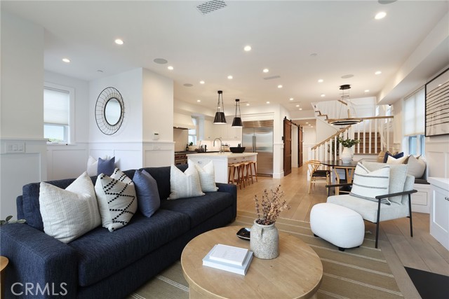Located in the highly sought-after Flower Streets of Corona del Mar Village, 617 Narcissus is a beautifully crafted, turn-key coastal residence offering 3 bedrooms and 3 baths. Designed by Brandon Architects and built by Patterson Homes, the home showcases timeless architecture, thoughtful design, and quality craftsmanship throughout. The light-filled open-concept floor plan creates seamless indoor-outdoor living. A wall of sliding glass doors in the living room opens fully to the front patio, allowing ocean breezes and natural light to flow effortlessly into the main living spaces—ideal for both everyday living and entertaining. The chef’s kitchen connects seamlessly to the dining and living areas, enhancing the home’s inviting and functional layout. Upstairs, the private primary suite serves as a peaceful retreat, complete with its own balcony—perfect for morning coffee or quiet evenings. Two additional bedrooms are well-appointed and offer flexibility for guests, family, or office space. The expansive rooftop deck is a true highlight, providing an exceptional setting for entertaining, dining al fresco, or enjoying coastal sunsets in one of the Village’s most desirable neighborhoods. Just moments from world-class beaches, dining, and boutique shopping, 617 Narcissus offers refined coastal living in the heart of Corona del Mar.