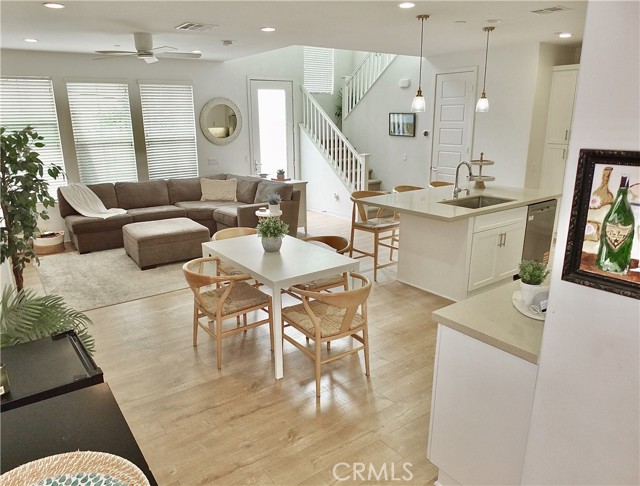 Motivated Seller! Discover this stunning and spacious 3-bedroom, 3-bathroom townhome, serenely nestled in the wooded hillsides of Lake Forest within the coveted Baker Ranch community. Built 2017, it is surrounded by resort-style amenities - including two private clubhouses, three sparkling pools and spas, tennis and game courts, multiple playgrounds, biking, lush parks, and scenic hiking trails - this residence offers a lifestyle that feels like a year-round retreat. A grand shared motor court plaza with guest parking leads to the finished garage with EV charger and an arched entryway, setting the tone for the quality and character found inside. Enter through the front door and immediately feel the natural warmth, abundant sunlight, and refined finishes throughout. The open-concept great room unites the living, dining, and kitchen spaces, enhanced by beautiful flooring, dramatic designer lighting, high ceilings and a chef-inspired kitchen with expansive counter space, a central island with breakfast bar, farmhouse sink, and stainless-steel appliances. A convenient guest bathroom is on the first floor as well as a large private high fenced patio. It is perfect for entertaining or dining al fresco. Ascend the soaring two-story stairway to the upper galleria and tranquil bedroom wing. The primary suite is a true retreat, featuring peaceful treetop views, a large spa-like bath with dual sinks, a huge walk-in shower with lounging bench, a private water closet, and a large lighted walk-in wardrobe room. Two additional sunlit bedrooms enjoy views of swaying palms and the courtyard below, while a well-appointed bath with tub/shower and a conveniently located separate laundry room complete the upper level. Additional highlights include top-rated schools, low HOA dues, no Mello-Roos, and unmatched access to nearby airports, shopping, dining, and freeways. Offering the perfect blend of privacy, sophistication, and active family living in a resort atmosphere - 69 Prominence is a home you’ll never want to leave.