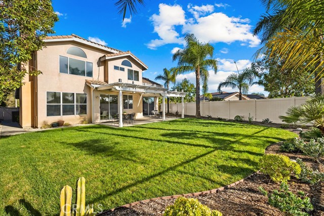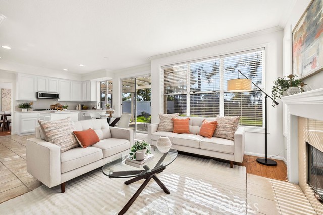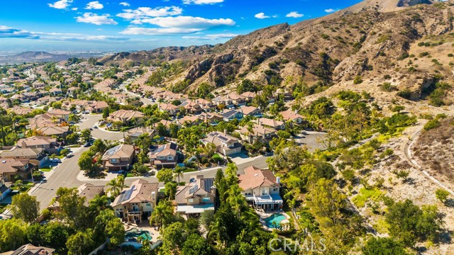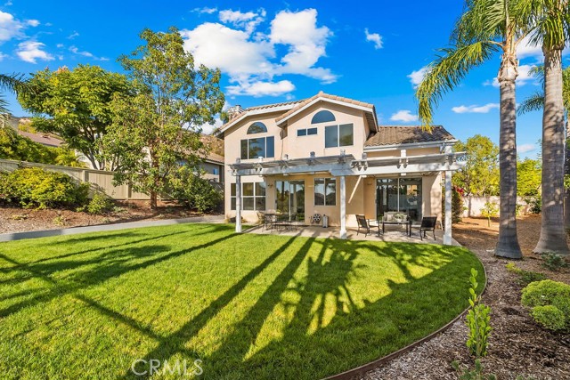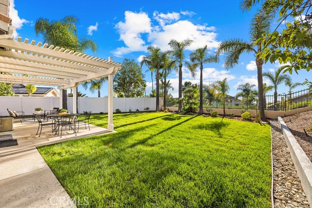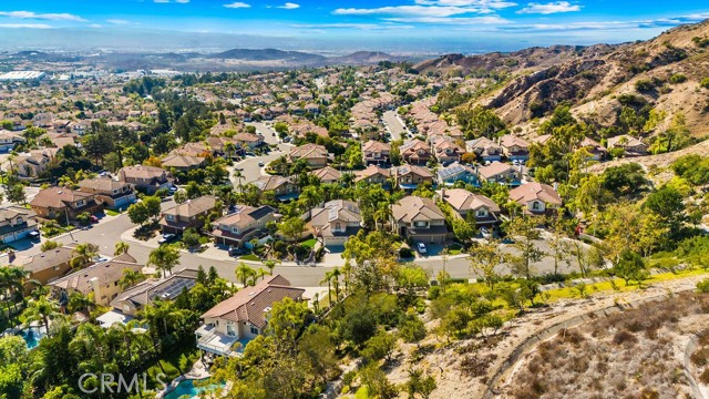 Welcome to 7 Pandale – Nestled in the coveted hillside community of Foothill Ranch, this residence sits on a rare 9,000 sq. ft. pool-sized lot. The expansive wrap-around yard features low-maintenance artificial turf, durable vinyl fencing, and mature landscaping that provides exceptional privacy. Perfectly situated on a quiet cul-de-sac, the home offers 4 bedrooms and 3 baths, including a convenient downstairs bedroom and bath ideal for guests. Step inside to soaring ceilings and abundant natural light, with backyard views from most rooms. The kitchen showcases white cabinetry, quartz countertops, a center island, breakfast nook, and a walk-in pantry. Adjacent to the kitchen, the spacious family room boasts a cozy fireplace and easy access to the outdoor living space. Dine and unwind beneath the covered patio while taking in spectacular sunset views. Upstairs, the primary suite offers more breathtaking views, dual walk-in closets, a soaking tub, walk-in shower, and dual vanities. Two additional bedrooms share a well-appointed bathroom. Fresh interior paint throughout gives the home a light, updated feel, while FULLY PAID SOLAR panels keep electric bills low. Home also has newer A/C and the entire interior was just freshly painted. Enjoy hiking and biking in nearby Whiting Ranch Wilderness park that surrounds the community. Conveniently located near local restaurants, shopping, Irvine spectrum and toll road access. This move-in-ready home truly has it all—privacy, space, and upgrades. Don’t miss your chance to own this rare gem!