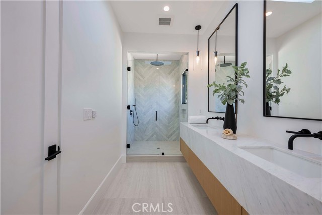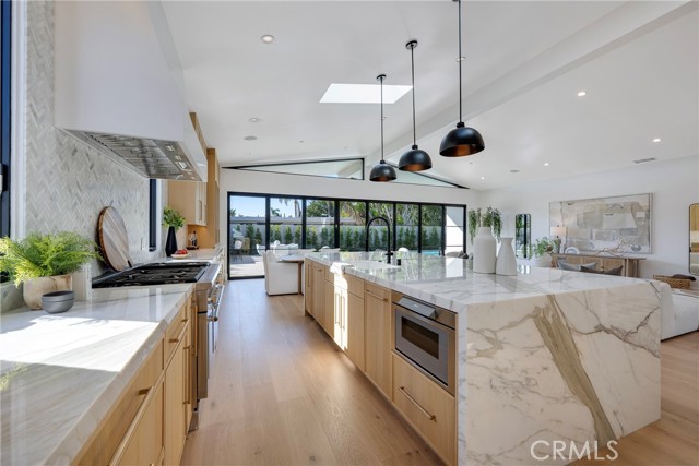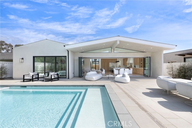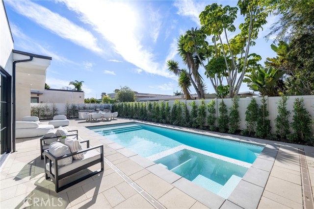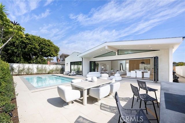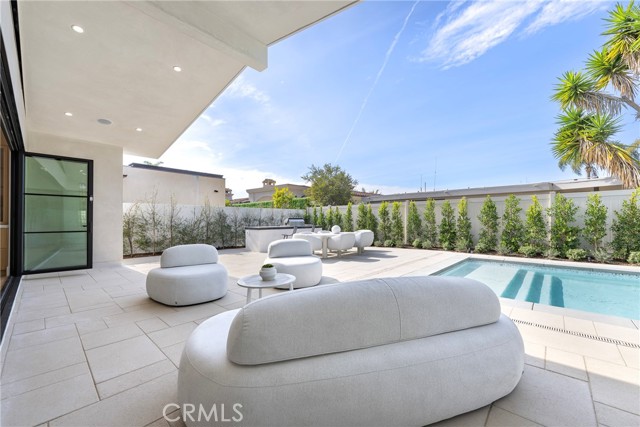 Welcome to this stunning, fully remodeled single-family home nestled in the coveted Irvine Terrace neighborhood of prestigious Corona del Mar. Upon entering through the custom double-door entry, you’ll instantly feel at home in the open-concept design, which flows effortlessly to an exquisite backyard oasis featuring a pool, spa, and built-in BBQ area. Perfect for year-round enjoyment, this inviting outdoor space connects seamlessly to the interior through folding glass doors. At the heart of the home lies the chef’s kitchen, adorned with Calacatta marble throughout, showcased in the impressive 11-foot island with waterfall edge and complemented with a herringbone backsplash. White oak custom cabinetry and Thermador appliances—including a 6-burner gas stove with griddle and double ovens—make this space truly an entertainer’s dream. The luxurious primary suite serves as a serene private retreat, offering a beautiful view of the pool and spa. The walk-in closet features custom double-drawer cabinetry for ample storage, while the primary bath impresses with a Carrera honed marble shower, white oak cabinetry, and marble countertops. Down the hall, you’ll find three additional bedrooms, each with custom closet designs, white oak hardwood floors, and high ceilings. The hall bath features custom tilework, dual sinks, white oak cabinetry, and gorgeous limestone countertops. Additional highlights include: High ceilings and five skylights that flood the home with natural light, in-home laundry room with double stackable washer and dryer, custom woodwork and designer fixtures, white oak hardwood floors throughout, a rustic brick front patio and driveway, outdoor lighting, privacy gates, and mature olive trees. Sophisticated and full of charm, this exceptional home embodies modern coastal luxury. Enjoy close proximity to world-class beaches, top-rated schools, Corona del Mar Village, Balboa Island, Fashion Island, and the Newport Beach Country Club.