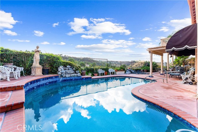Welcome to 7572 E. Endemont Court! Nestled on a quiet cul-de-sac w/i the prestigious guard-gated community of Belsomet in Anaheim Hills, this spacious residence offers an incredible opportunity to own a home w/ remarkable potential in one of the area’s most sought-after neighborhoods. Boasting 5 bedrooms, 4 bathrooms, & approximately 4,046 square feet of living space, this property combines generous proportions w/ a functional floor plan ideal for both comfortable everyday living & entertaining. The entry opens to a formal living room featuring a fireplace and striking high ceilings that bathe the space in natural light, creating an airy & elegant ambiance. Adjacent to the living room, the formal dining room offers the ideal setting for gatherings & special occasions. The spacious family room, featuring a second fireplace, seamlessly connects to the large kitchen—complete w/ a center island, gas cooktop, breakfast bar seating, & a casual eat-in area overlooking the backyard. The downstairs bedroom & full bathroom make multigenerational living or guest accommodations effortless. The spacious downstairs office, located just off the entry, provides the ideal setting for a productive home workspace. Upstairs, discover four additional bedrooms, including two primary suites, each offering privacy & comfort, & a third bathroom sitting between the other two bedrooms. A versatile loft/flex space provides the perfect setting for a home office, study area, or media room. High ceilings throughout enhance the sense of openness & grandeur. Set on an expansive 23,800 square foot lot, the outdoor space is a private oasis designed for leisure & entertaining, featuring a sparkling pool & spa, built-in BBQ, Koi Pond, & expansive patio space—perfect for relaxing or hosting gatherings while enjoying picturesque hillside. The three-car attached garage w/ direct access adds convenience & storage. With some TLC, this home presents an incredible opportunity to customize & modernize to your taste w/i one of Anaheim Hills’ most prestigious gated neighborhoods. Located near the 91/55/241 freeways, this home offers easy access to nearby shopping, dining, golf courses, & top-rated schools. Outdoor enthusiasts will love the proximity to scenic hiking & biking trails throughout the surrounding hills. Don’t miss this chance to create your dream home in the highly sought-after community, where luxury, privacy, & potential come together in one remarkable property.