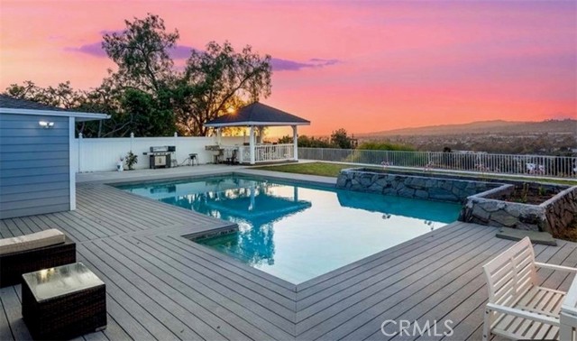This home is for someone with privacy in mind! Fantastic Panoramic Views, Privacy and so much more! Located at the top of La Habra Southern Hills. Welcome to one of the most captivating view homes in Orange County, positioned at the end of a quiet pride of ownership neighborhood cul-de-sac. Architecturally designed for indoor-outdoor living. The property features a very private sparkling, 20’ by 40’ pool, framed by a charming stone planter, block-wall fences and wonderful views. A unique and beautiful backdrop for entertaining. Additionally at the rear edge of the back yard, there is a gazebo and barbecue area with a tranquil setting for your enjoyment. The entry offers beautifully hand-carved hardwood entry doors. As you enter the foyer, you’ll be greeted with breathtaking, unobstructed views of the mountains and la Habra Heights city skyline. From the LA Skyline, to Mount Baldy, the views are breathtaking. Inside, is a flowing floorplan with living room, the formal dining area a separate family room with a cozy fireplace that creates the family kitchen. The kitchen and family room overlook the pool and has those views. This home is a four bedroom, two bath home. The Main suit, kitchen, and family room have views. Modern appliances, central AC, crown moldings, fireplace, inside separate laundry room and the home has camera security surveillance and a remote security gate. Daily living experiences, spectacular sunsets and shimmering city lights are such a rear find. When the world is moving so fast today, you will be enjoying the ideal setting to relax. Wither entertaining or a quiet afternoon in the pool, you can unwind after a long day from the comfort of your own home.