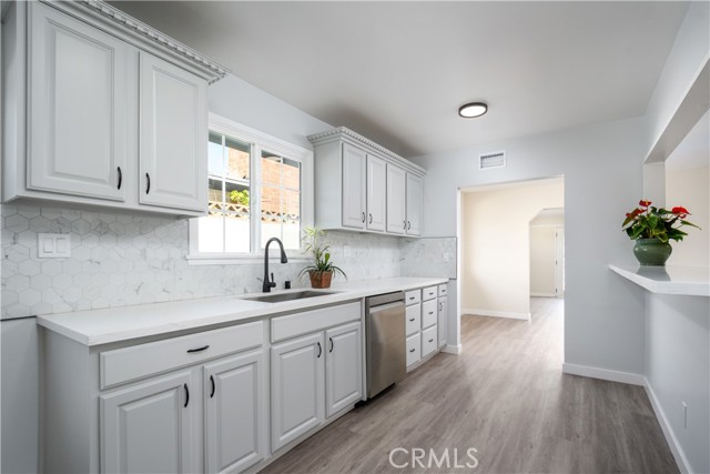 Welcome to this completely updated, move-in-ready home in a desirable, well-established neighborhood. NO HOA. LOWER Tax rate. The single-level floor plan features 4 bedrooms and 2 fully renovated bathrooms. Entertain guests in the spacious living and family rooms, which share a dual-sided fireplace for a warm and inviting ambiance. The stunning gourmet kitchen is a chef's delight, with new quartz countertops, upgraded cabinetry, and sleek stainless steel appliances. Enjoy the beautiful, updated landscaping in the Front and backyard, perfect for outdoor gatherings and relaxation. Beat the summer heat in the sparkling POOL. Recent major upgrades provide peace of mind and include a new HVAC unit, new laminate flooring throughout, a newer roof, fresh interior and exterior paint, and a new automatic garage door. This home is ideally located near entertainment centers, freeways, shopping, and restaurants, and is served by excellent schools. Take a virtual Tour.