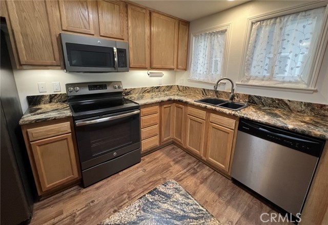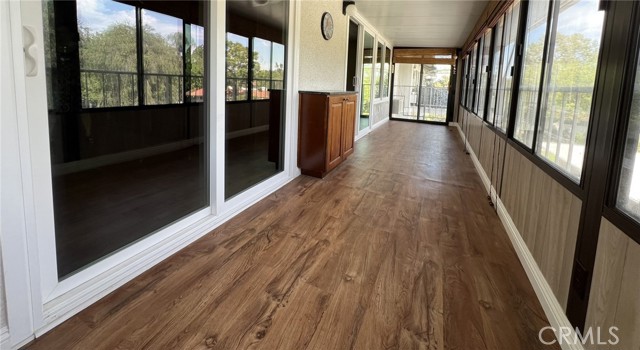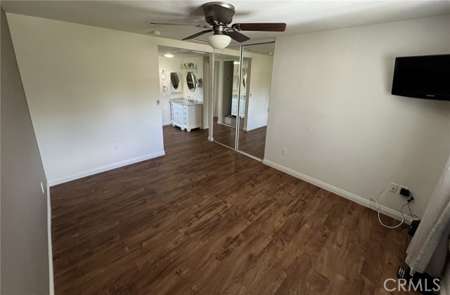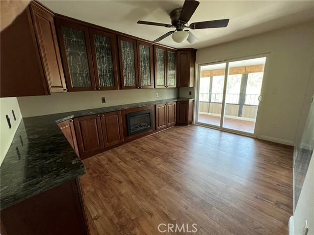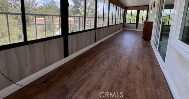 Beautiful two-bedroom, two-bathroom unit available in a quiet end of Laguna Woods. Luxury vinyl flooring throughout with an enclosed balcony for extra space. Open concept kitchen and living room with multiple skylights throughout the home. Granite countertops throughout the kitchen, with a large kitchen island. Beautiful built-in custom cabinetry with leaded glass and granite counters in the secondary bedroom along with a built-in fireplace. Ceiling fans in all rooms. Large built-in fireplace in living room. Full wall mirrored dining room area. Multiple and ample storage spaces. Stackable washer and dryer. Central heating and air conditioning. Assigned carport with storage.