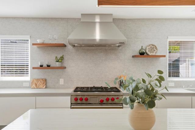 Welcome to this exquisite single-level masterpiece, reimagined & expanded in 2020. Offering 2,396 sq. ft. of luxury on a Ginkgo tree-lined street, this designer home by Young & Borland Architects blends natural wood & stone with timeless architecture inspired by Frank Lloyd Wright's principles. A dramatic atrium entry with 11' ceilings & multiple skylights seamlessly flows into a light-filled great room. The kitchen is a culinary masterpiece showcasing uncompromising artisanship with handcrafted Italian cabinetry, a natural marble island, Dekton counters, full wall textured tile backsplash, & imported lighting, + a butler's pantry & convenient coffee nook. Retreat to the opulent primary suite, featuring a walk-in closet & spa bath with huge walk-in shower & soaking tub. A junior ensuite, two additional bedrooms, remodeled baths, & a dedicated study offer flexible living. The private backyard sanctuary offers a pergola and outdoor kitchen with a Blaze BBQ and stone counters, perfect for al fresco dining. Sustainable upgrades include a 9.2 kW owned solar system, a dual-zoned heat pump w/ A/C, & 10" wide plank h/w flooring. This is a rare opportunity to own a home that embodies architectural brilliance, superb craftsmanship, & modern luxury in one of Sunnyvale's most coveted areas.