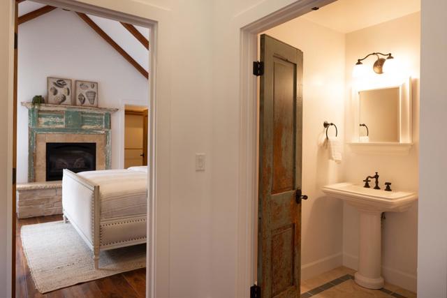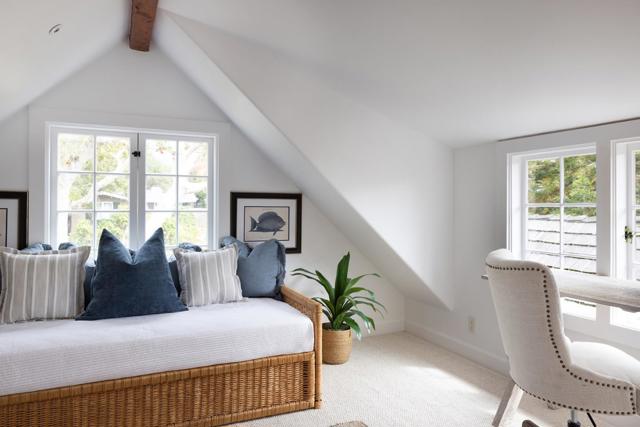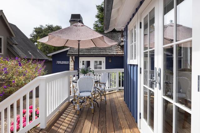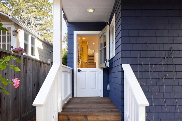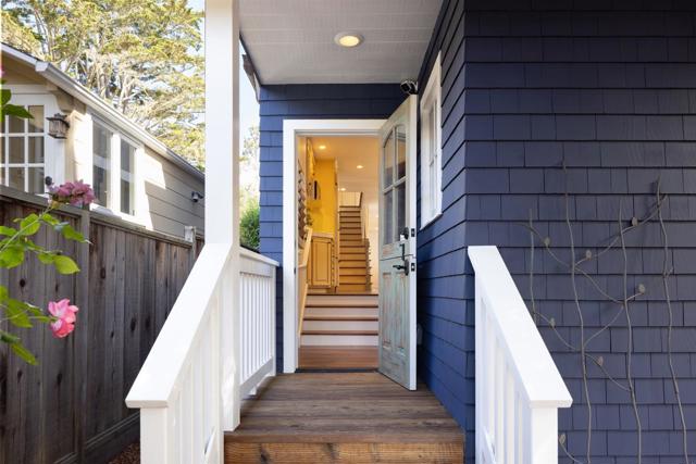 Welcome to Sea Spray, a quintessential Carmel-by-the-Sea home that exudes character and beauty throughout. Located on a quiet street a mere six blocks from the heart of the village. The residence offers three bedrooms, each with an en-suite full bathroom, plus a powder room conveniently located off the kitchen. High ceilings and abundant windows fill the interiors with natural light. An elevated side deck is a wonderful venue to enjoy the afternoon sun, while the backyard centers around a majestic sequoia tree and Carmel Stone fireplace, perfect for evenings outdoors in good company. Meticulously cared for by long-time owners with recent upgrades including refinished hardwood floors, fresh interior and exterior paint, new furnace, new landscaping, and an epoxy-finished garage floor. Fully fenced and gated, the property is situated just a short walk to town.
