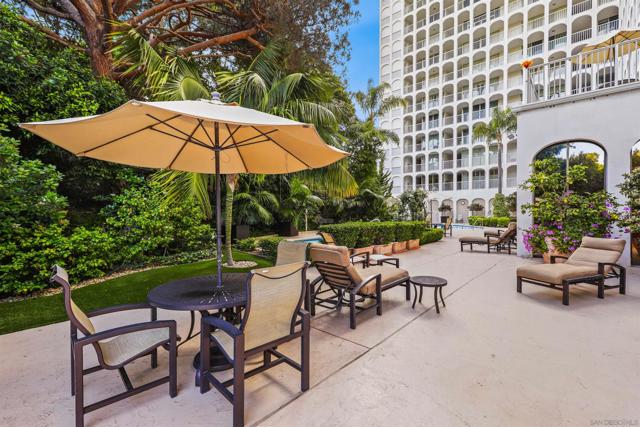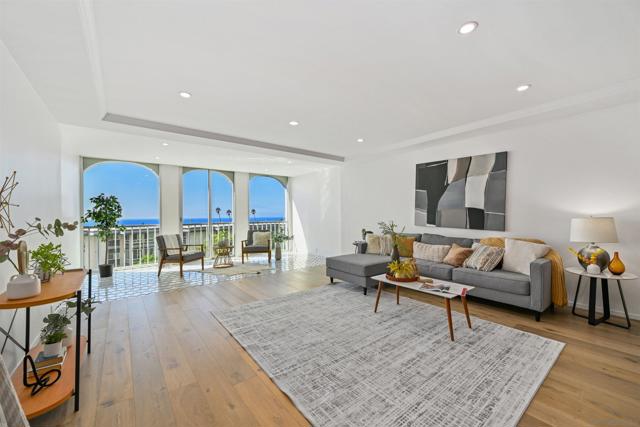 Sunsets & Panoramic Ocean Views 365 Days a Year! Spacious, Recently Remodeled, and Ideally Located in The Seville. Welcome to one of the largest and most desirable 2-bedroom residences in The Seville, where every room is bathed in natural light and features breathtaking panoramic ocean and golf course views through floor-to-ceiling windows. This rare, light-filled unit boasts a bright, open floor plan enhanced by coffered ceilings, wood flooring, recessed lighting, and elegant finishes throughout. The newly remodeled kitchen is a chef's delight, offering high end appliances, ample counter space, and stylish stone countertops. Enjoy the convenience of an in-unit washer and dryer and abundant storage throughout the home. The unit also includes one assigned space in the secure, underground parking garage. Ideally located just blocks from The Village, you'll have easy access to charming boutiques, cafes, bistros, the weekly farmers market, and the stunning La Jolla coastline—making car-free living effortless and enjoyable. Residents of The Seville enjoy a full suite of resort-style amenities including a pool, spa, fitness center, media room, and concierge services. With controlled access, private storage, and an attentive staff that goes above and beyond, The Seville offers a truly elevated and comfortable living experience. Don't miss this exceptional opportunity to live in one of La Jolla's most prestigious buildings with world-class views and amenities.