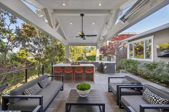 Tucked away on a quiet cul de sac in Menlo Park's Sharon Heights neighborhood, this renovated & turnkey residence offers a rare blend of privacy, style & exceptional indoor-outdoor living. Ideally located near Stanford, Sand Hill Rd & Hwy 280, the home provides convenient access to leading Silicon Valley tech campuses. The property showcases inviting curb appeal with manicured landscaping, fruit trees & turf lawn. The main residence offers 4 bedrooms & 2.5 baths. A separate bonus suite with full bath & private exterior entrance provides flexible use as an office, au pair or guest quarters. At the center of the home, a spacious kitchen-family great room with vaulted ceiling creates a warm & inviting gathering space. The chef's kitchen features stone counters, Carrara marble island, walk-in pantry & premium appliances including Wolf & Sub-Zero. The private bedroom wing includes a primary suite with double sink vanity & walk-in closet, plus three additional bedrooms served by a hall bath. The backyard is a standout, featuring Connecticut bluestone hardscape, covered loggia with heaters, outdoor kitchen with Lynx BBQ, fire pit, in-ground spa, turf lawn & putting green, all surrounded by mature hedging for privacy. Acclaimed Las Lomitas school district & near top private schools.