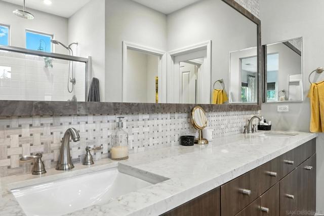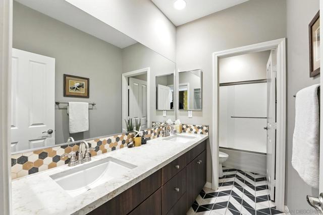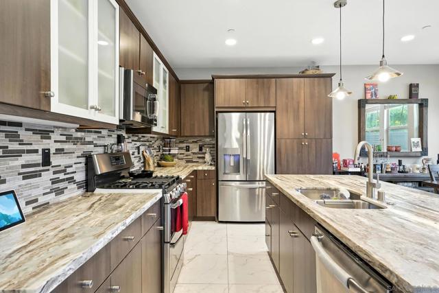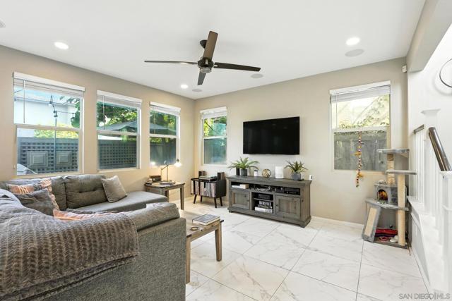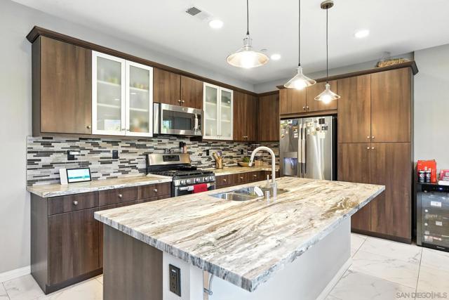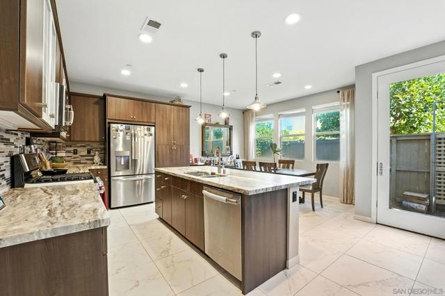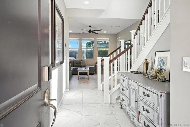 Welcome to 1035 Sea Glass Way, one of only three model homes in this highly sought-after community, fully loaded with exceptional upgrades and premium finishes throughout. This stunning residence features beautiful custom cabinetry paired with top-of-the-line GE appliances, including a double oven, perfect for the home chef. Enjoy elegant granite countertops in the kitchen and bathrooms, marble-like tile flooring, and warm wood flooring in the master suite.The home is equipped with a built-in speaker system throughout for seamless entertainment, blackout shades in the master bedroom, and a luxurious waterfall shower head. The master closet boasts custom shelving, providing ample and organized storage. Thoughtful lighting accents the staircase, enhancing the home's ambiance. Additional highlights include a low HOA, extremely affordable solar lease, and a spacious two-car garage. Set in a well-maintained community, this home offers both style and comfort with modern convenience. Don’t miss this rare opportunity to own a beautifully upgraded model home in a prime San Diego location!