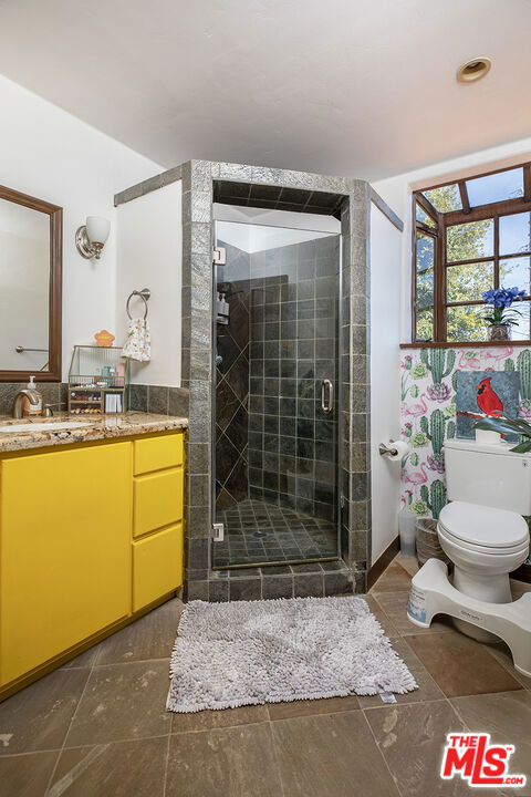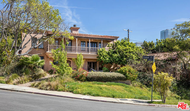 Nestled in the prestigious Comstock Hills neighborhood, this magnificent Spanish-style Westwood estate thoughtfully reimagined by an architect-owner in 2009 offers the rare combination of timeless architecture, generous space, and an unbeatable Westside location. Spanning 4,600 square feet on a lush 9,737 SF lot, this entertainer's dream home unfolds across two beautifully appointed levels. The grand living room anchors the main floor as French doors spill out onto front and side patios, seamlessly blending indoor and outdoor living. A dramatic dining room with soaring beamed ceilings and French doors to the garden sets the stage for memorable dinner parties, while the chef's kitchen features granite countertops, double ovens, and a sun-drenched breakfast nook with a skylight with views of Century City. A warm library/office with garden views provides a quiet retreat, while the expansive family room with its beamed ceiling, tile floors, and private entrance offers ideal flexibility for a media room, playroom, or home gym. Two bedrooms and baths and an expansive guest or maid's suite with its own private patio complete the downstairs. Upstairs, the serene primary suite opens to a sweeping balcony and features a spa-like bath with Jacuzzi tub, skylit shower, his-and-hers vanities, and generous walk-in closets. Also upstairs are a secondary en-suite bedroom, a spacious adjacent bedroom, and a bonus room perfect as a nursery or home office, all with tree-top vistas. The generous yard offers plenty of space for barbecues, gardening, play, or simply soaking in the California sun. A 2-car attached garage provides secure parking and easy access. All appliances included, including refrigerator, washer, dryer, dishwasher, microwave, and range/oven. Central AC/heat keeps things comfortable year-round. Located on a tranquil residential street, just minutes to Century City, Beverly Hills, UCLA, Westwood Village, and the 405 freeway. Zoned for highly-regarded Fairburn Avenue Elementary. This upscale enclave delivers walkability, a quiet residential setting, and Westside living at its finest--ideal for professionals, families, or those seeking a rare full-size home in the heart of the city.