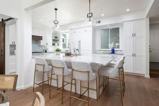 Step into resort-style living in the highly sought-after community of The Manors, where comfort meets convenience. This beautifully remodeled two-story retreat captures the essence of style beginning with a private, garden-like entrance leading to the inviting living/dining room ensemble featuring dramatic vaulted ceilings, a charming fireplace, and French doors that open to a private rear patio, perfect for seamless indoor/outdoor entertaining. The stunning, newly remodeled kitchen with top-of-the-line appliances and huge center island with convenient breakfast bar is a chef's dream offering the perfect setting for relaxed mornings, easy conversation, and everyday living. A cozy office with rear patio access, and a half bath round out the main level of the home. Upstairs, the luxurious primary suite is complete with vaulted ceilings, a private balcony, walk-in closet, and spa-inspired bath. Two additional bedrooms serviced by a hall bath complete the upper level. Residents can enjoy access to the community pool, scenic Redwood Shores trails, and Shannon Park, all just steps away, while being ideally located near top-rated schools, tech hubs, The Marketplace at Redwood Shores, the library, and scenic waterways - truly a lifestyle of effortless luxury, recreation, & convenience.