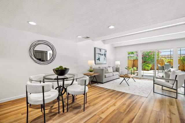 Welcome to this move-in ready Cupertino townhome, where top-rated schools and a vibrant community meet. Main level features an open-concept layout seamlessly connecting the kitchen, dining, and living areas, with the backyard extending your living space for a bright, airy feel. Sleek retractable screens on the front and back entrances welcome the breeze without blocking your view. The kitchen features stainless steel appliances, granite counters, a custom backsplash, and smart storage with an appliance garage, lazy Susans, and wine rack. Unit has A/C, hardwood floors and a walk in closet. Parking includes a 1-car detached garage plus 2 additional spaces, including one directly in front of the unit. Upstairs, has a spacious primary suite including a walk-in closet and a private patio, perfect for relaxing. The community offers a pool, playground, tennis courts, and a clubhouse. Enjoy morning coffee in your sunny backyard, or stroll less than half a mile to Memorial Park for year-round events. You will appreciate the homes proximity to shopping, dining, major tech campuses, and freeways 85 & 280. HOA covers water, garbage, and common areas. Excellent schools including Monta Vista High - buyers to verify enrollment. Don't miss this opportunity to own a piece of beautiful Cupertino!