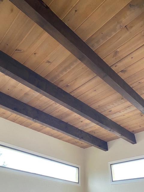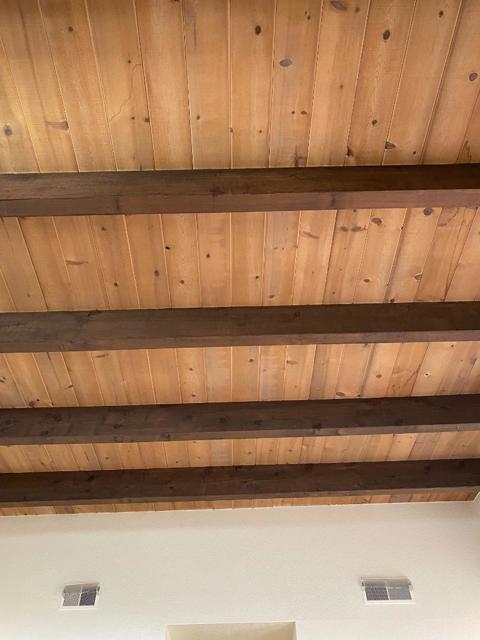 Great layout of floorplan. This one bedroom condo has plenty of closet space. If you check out the bathroom pics.... you have two separate counters and faucets. The high ceiling in the bedroom with the wood beams adds a nice vibe. Kitchen has electric stove/oven. Also has microwave and dishwasher. In the laundry room, you have the washer and dryer that come with the unit. A counter to fold clothes with cabinet storage in that room. The living room has a gas log fireplace. The sliding doors go out to the private patio. From the bedroom, you can also step out into the tiled patio. There is also a one car garage with with a remote for easy access.